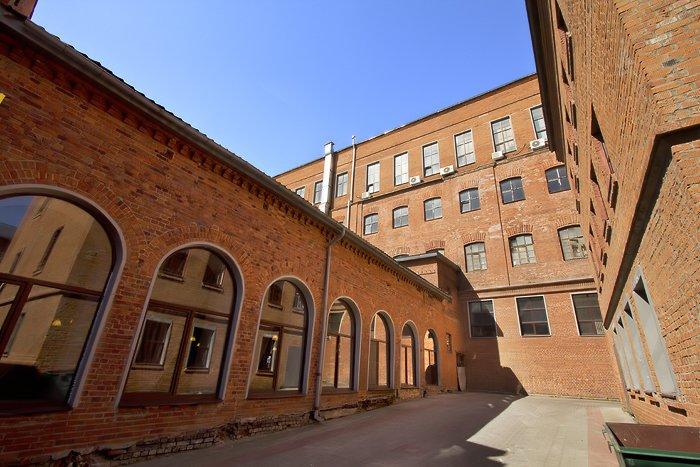 Главный корпус Московского товарищества резиновой мануфактуры построен в 1911 г. известным московским зодчим Г. А. Гельрихом (1878 ‒ после 1917) – автором большого количества замечательных строений, относящихся к лучшим образцам московского модерна. Гельрих (Густав Карл Юлиус Адольфович) специализировался на строительстве многосекционных многоэтажных доходных домов каркасных конструкций, а на территории «Богатыря» реализовал проект в краснокирпичном стиле.