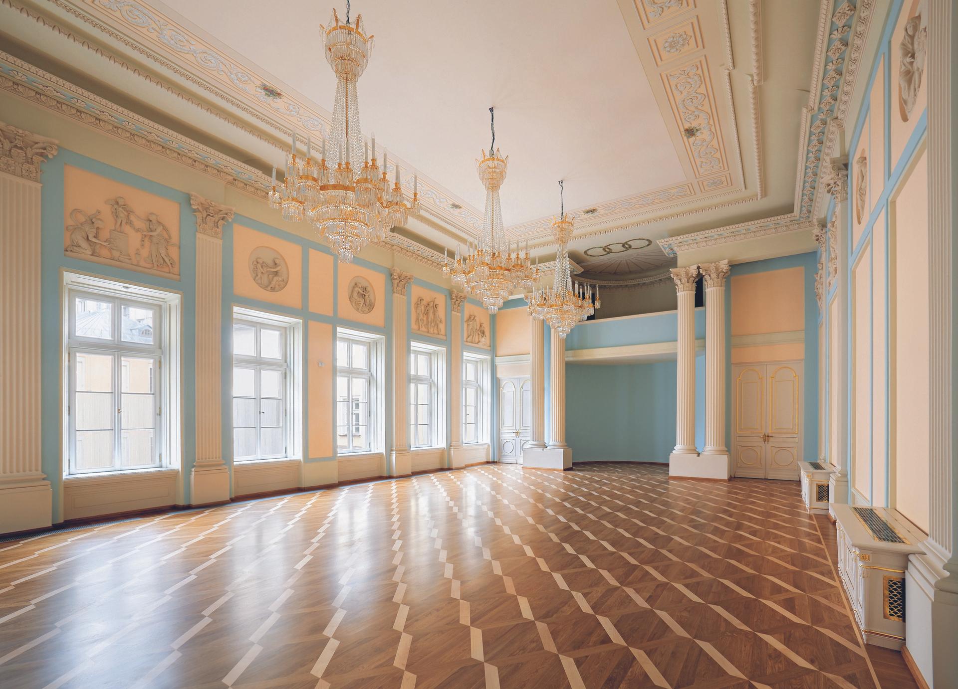 Паркетные полы в помещениях делались по архивным описям 1805 года и по историческим аналогам. Как и в начале XIX века, в парадном зале – из дуба и березы, в анфиладных – из дуба.