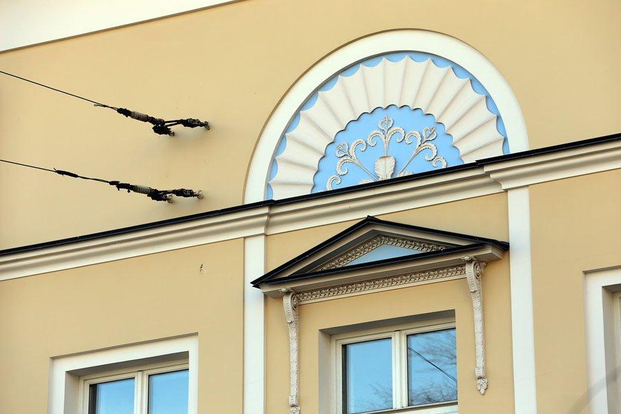 При демонтаже пола на втором этаже обнаружились фундаменты двух печей. Они были восстановлены и облицованы керамическими изразцами по найденным историческим образцам.