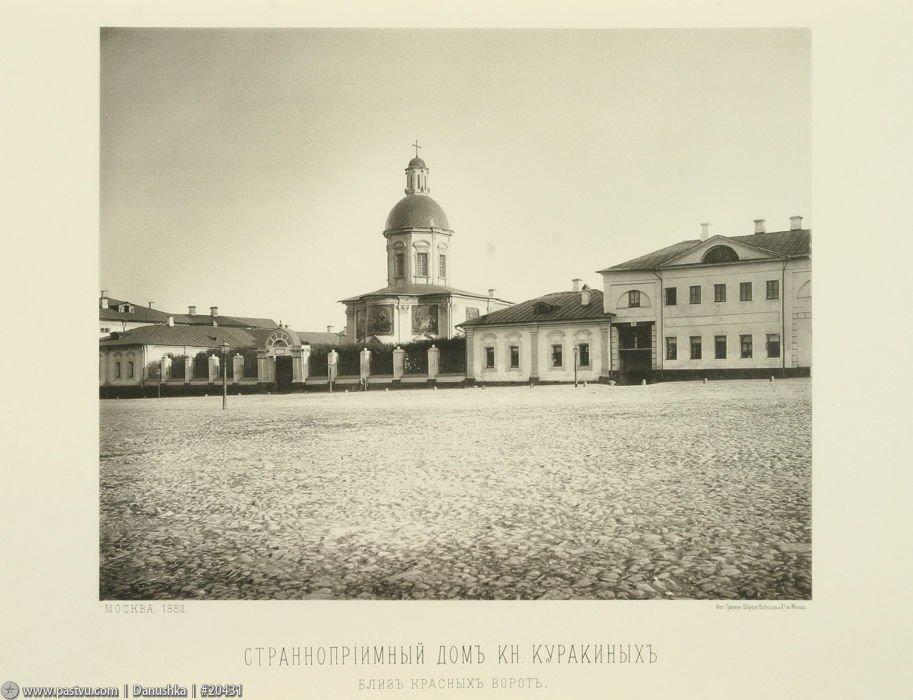 В 1790-е годы по соседству с богадельней был выстроен каменный жилой дом князей Куракиных (современный дом № 6). Ранее на этом месте находился деревянный особняк, принадлежавший княгине Елене Степановне Куракиной. Прекрасный образец классицизма с пилястровым портиком и скульптурой на фасаде, возможно, возведен по проекту выдающегося московского зодчего М.Ф. Казакова. Во всяком случае, в его знаменитых "Архитектурных альбомах" этот дом зафиксирован. Особняк Куракиных – один из немногих сохранившихся «геральдических» домов Москвы: в тимпане фронтона виден герб князей Куракиных в окружении геральдических фигур и военных атрибутов.