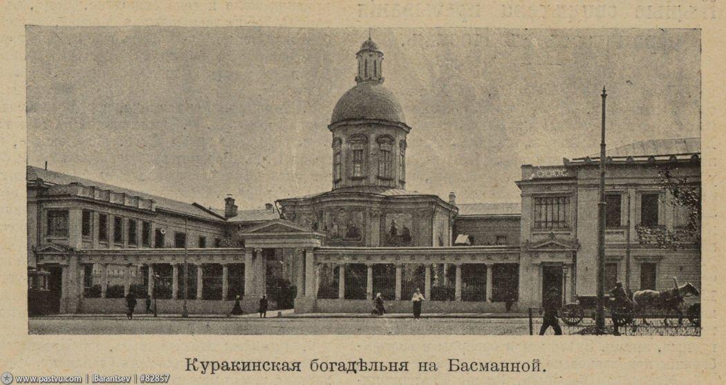 В 1731 году князь Александр Борисович Куракин, согласно Указу императрицы Анны Иоанновны, безвозмездно получил в Басманной слободе участок земли для строительства богадельни для призрения увечных воинов. Строительство велось Куракиным во исполнение воли своего покойного отца князя Бориса Ивановича и было завершено к 1742 году. В результате Первопрестольная украсилась замечательным памятником аннинского барокко с домовым храмом в честь Николая Чудотворца в центральной части ансамбля.