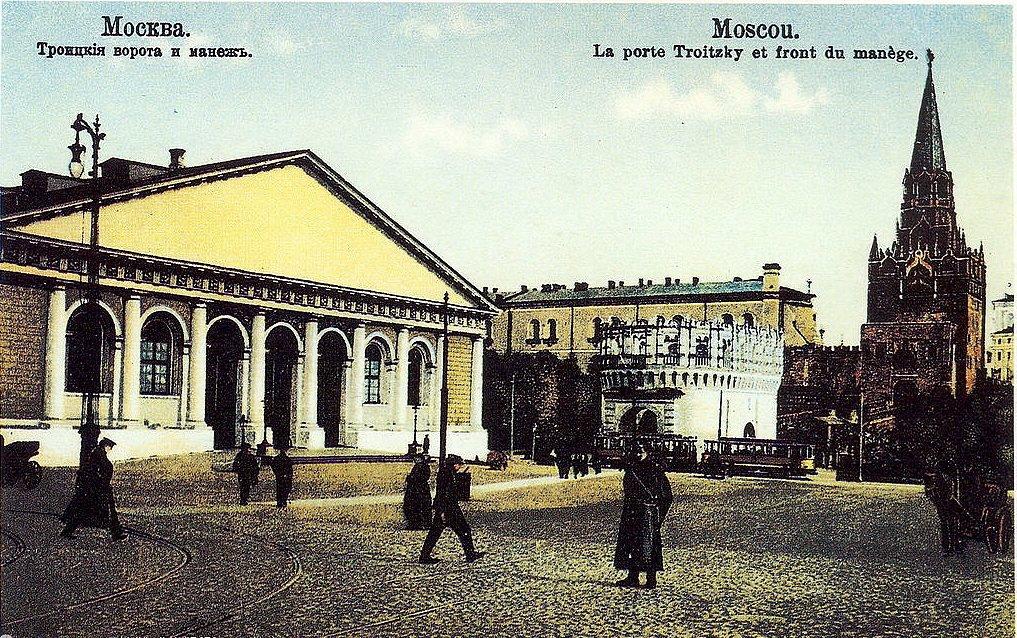 В XVII – XVIII веках на месте будущего Манежа находилась площадь, где торговали дровами, сеном и мхом, которым конопатили деревянные стены домов (с тех времен и существует название Моховой улицы). Пожар 1812 года уничтожил деревянную застройку улицы, но уже к 1817 году большая часть зданий была выстроена заново. В этом же году 30 ноября, ко дню парада войск - по случаю пятилетней годовщины разгрома армии Наполеона императором Александром I, и открылся Манеж.