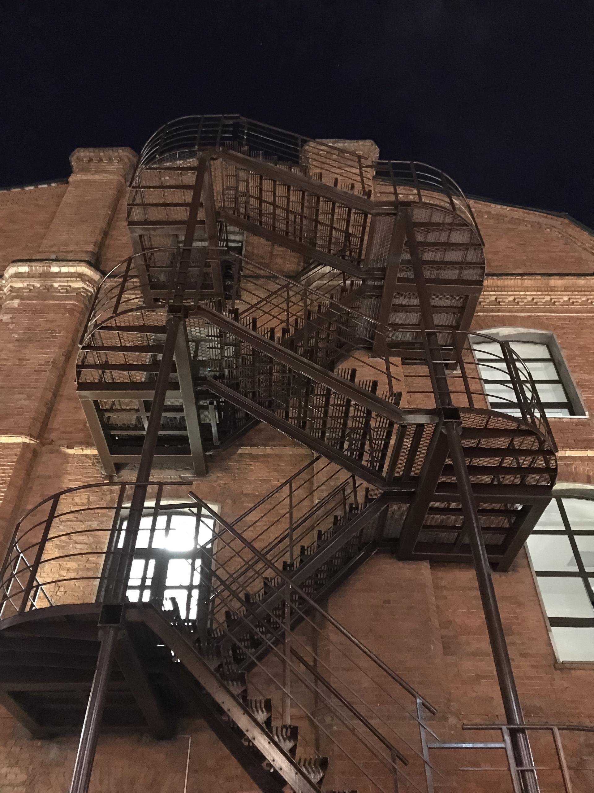 Трех- и четырехэтажные цеха разной протяженности и величины, из темно-красного кирпича выстроены с 1874 по 1914 годы и занимают целый квартал. Собственно, сама Дербеневская улица когда-то была внутриквартальной. Комплекс создавался архитектором и инженером В.Г. Залесским.