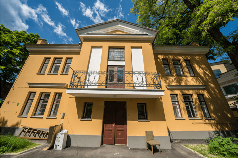 Фасады дома очистили от многолетних наслоений, отреставрировали штукатурку и вернули зданию его исторический желтый цвет с белыми декоративными элементами. Была отремонтирована и ограда вокруг территории, воссоздавая целостный архитектурный ансамбль.
