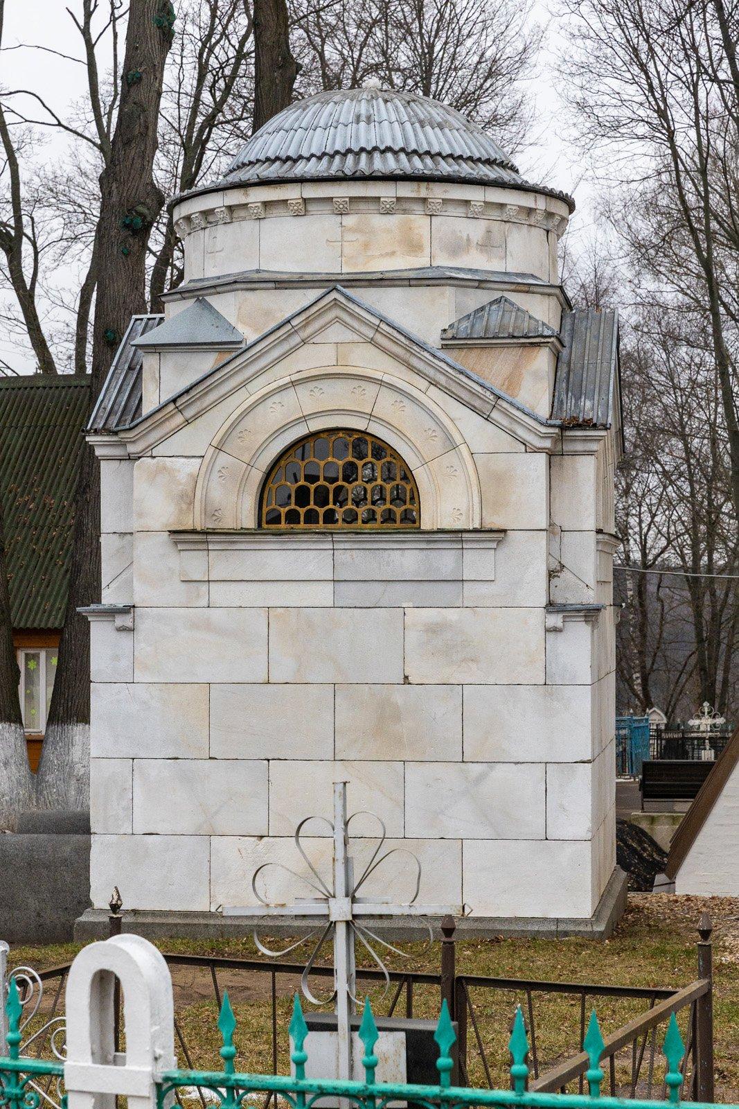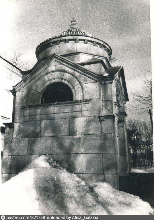 В эту часовню был перенесен прах Г.А.Захарьина; впоследствии здесь же упокоились его жена Е.П.Захарьина и сын С.Г.Захарьин.