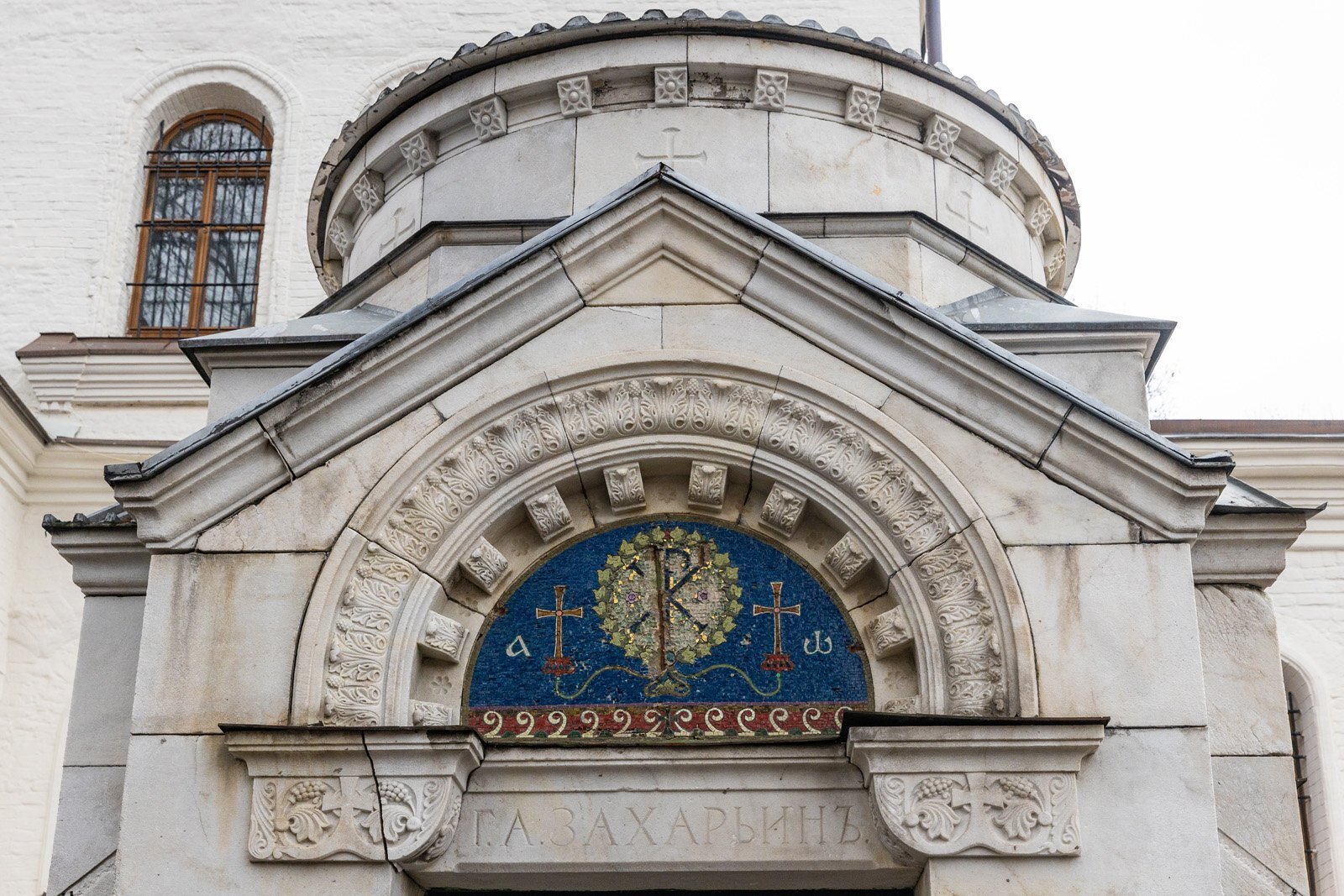 А возле Владимирской церкви в 1907–1908 гг. на средства Захарьиных по проекту знаменитого зодчего Федора Шехтеля, выполненному еще в 1899 году, была построена семейная усыпальница-мавзолей. Эта небольшая постройка вызывает ассоциации с византийской архитектурой, точнее говоря, с византийскими постройками г. Равенны.
