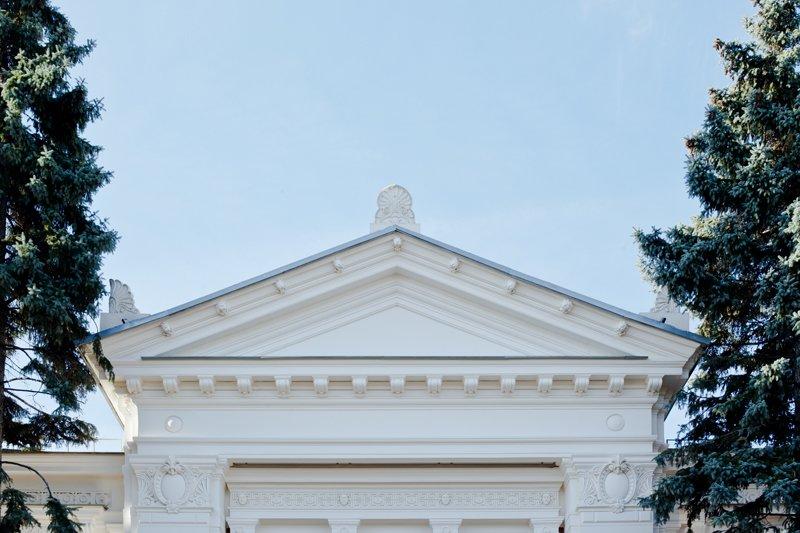 Особое внимание уделялось восстановлению декоративных элементов фасадов, таких как штукатурка колонн, пилястр и карнизов, а также восстановлению утраченных завершений кровли в виде акротерий. Воссозданы оконные блоки с сохранением исторического членения переплётов, а также металлические ограждения на крыльцах, выполненные в стиле неогрек.