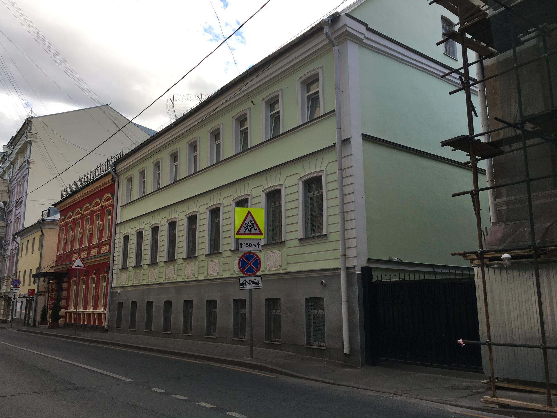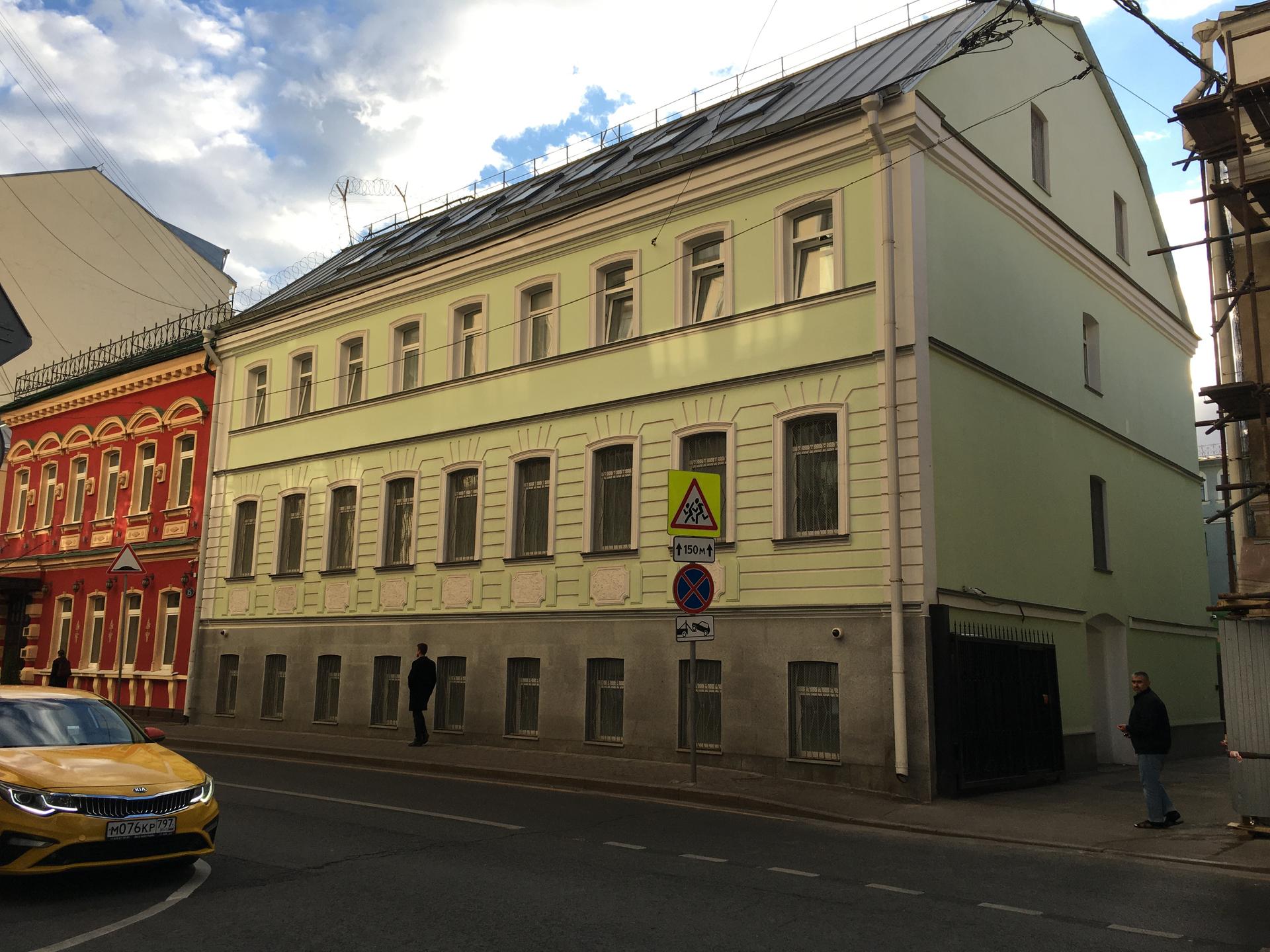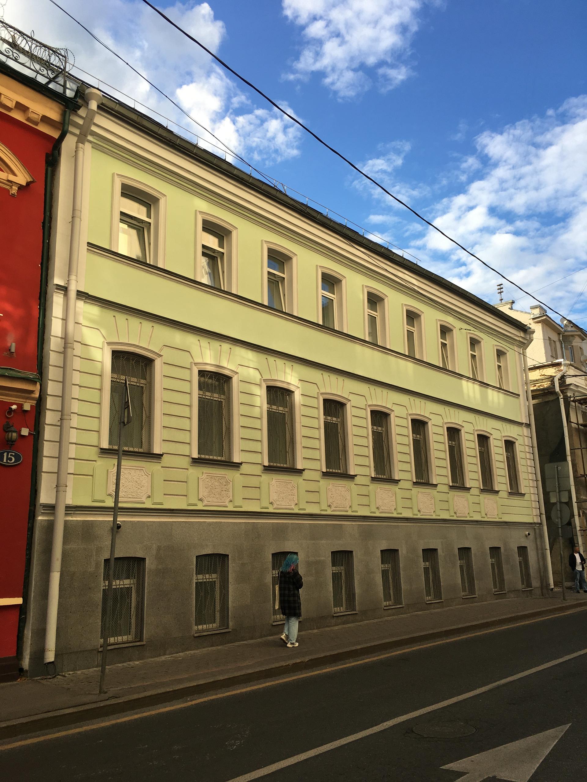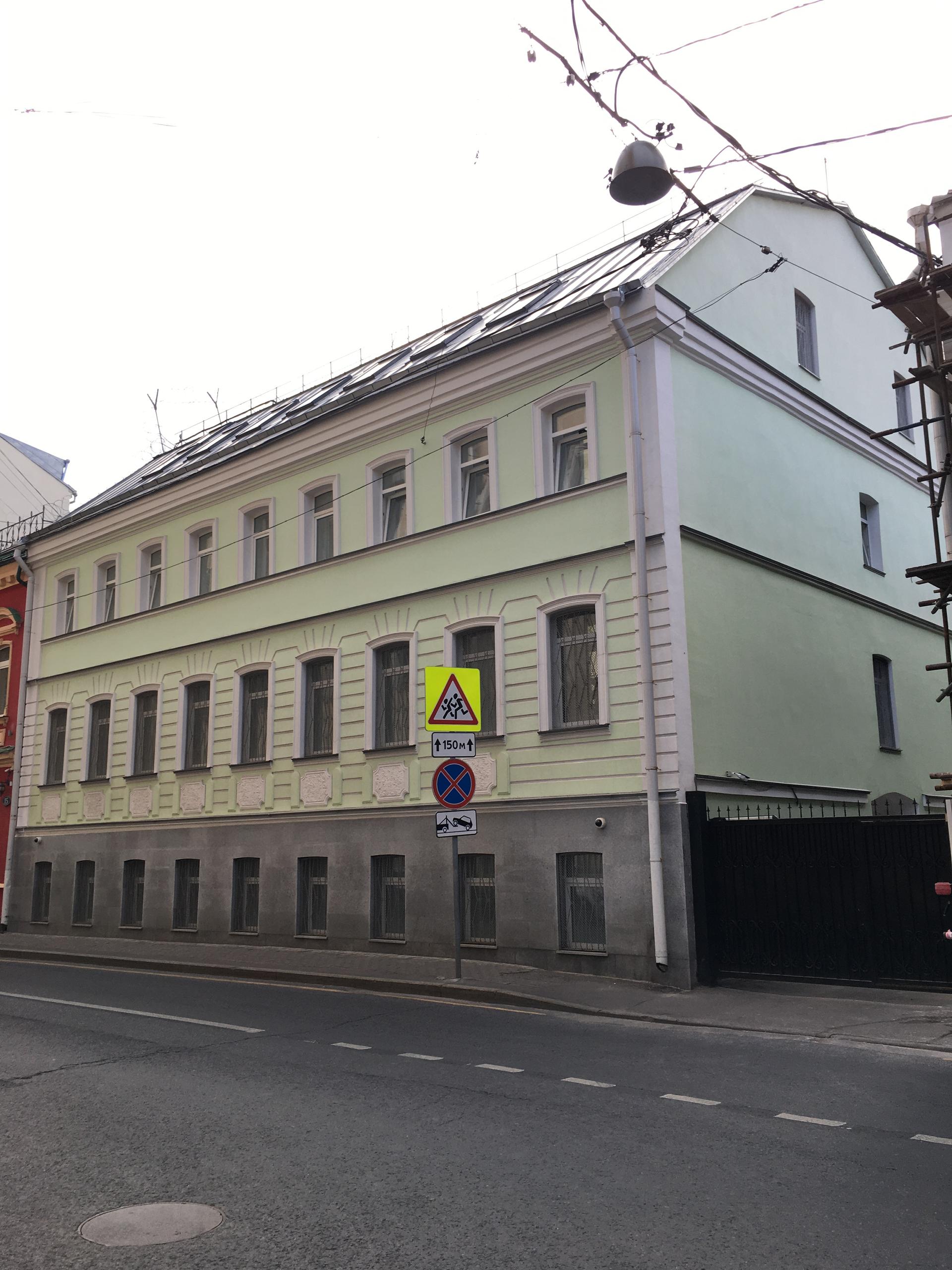 Небольшой трехэтажный дом был построен в 1872 г. на территории усадьбы, парадным двором выходившей на улицу Большая Лубянка. В 1880 г. дом был перестроен архитектором Сергеем Аркадьевичем Елагиным для устройства в нем меблированных комнат.