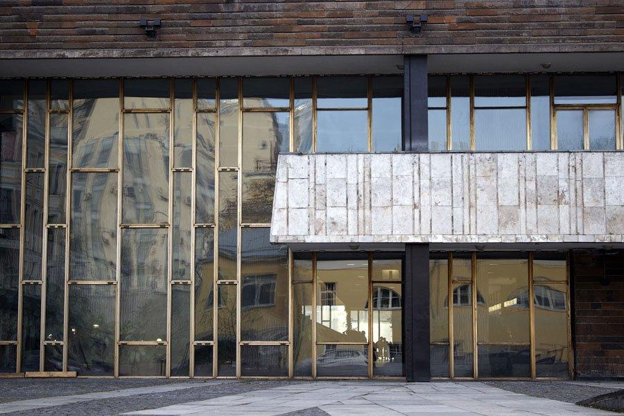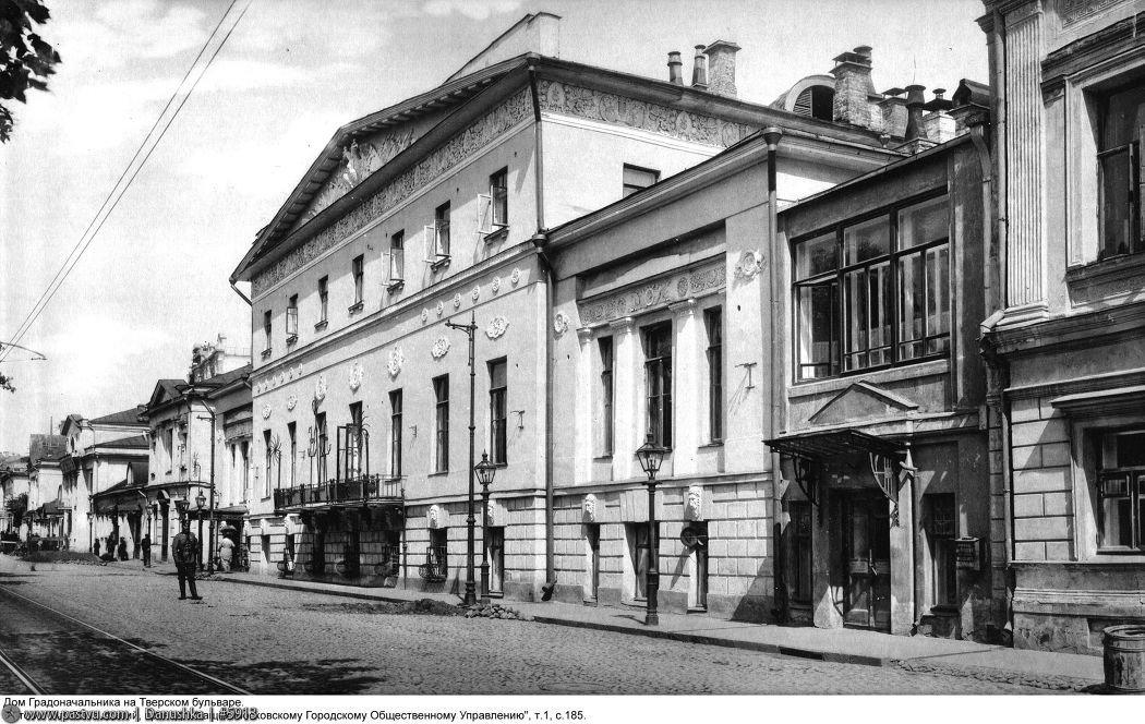 Темно-коричнево здание МХАТа на Тверском бульваре, занимающее почти целый квартал, кажется непропорциональным и разрывающим ряд двухэтажных домиков XIX в.