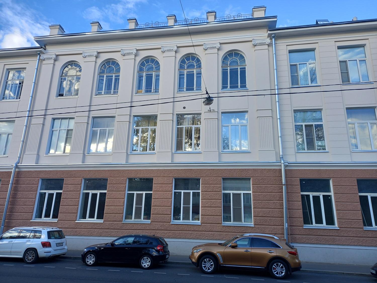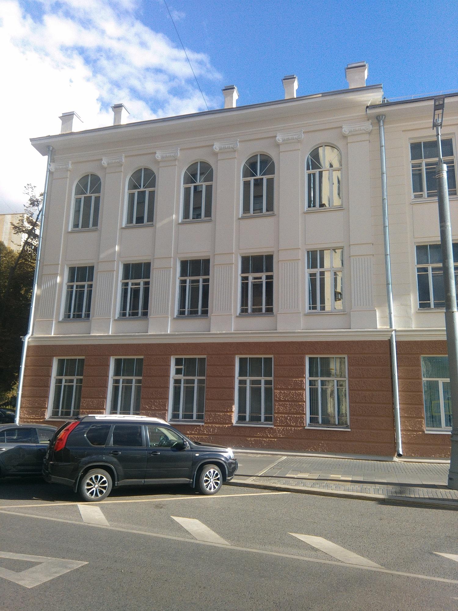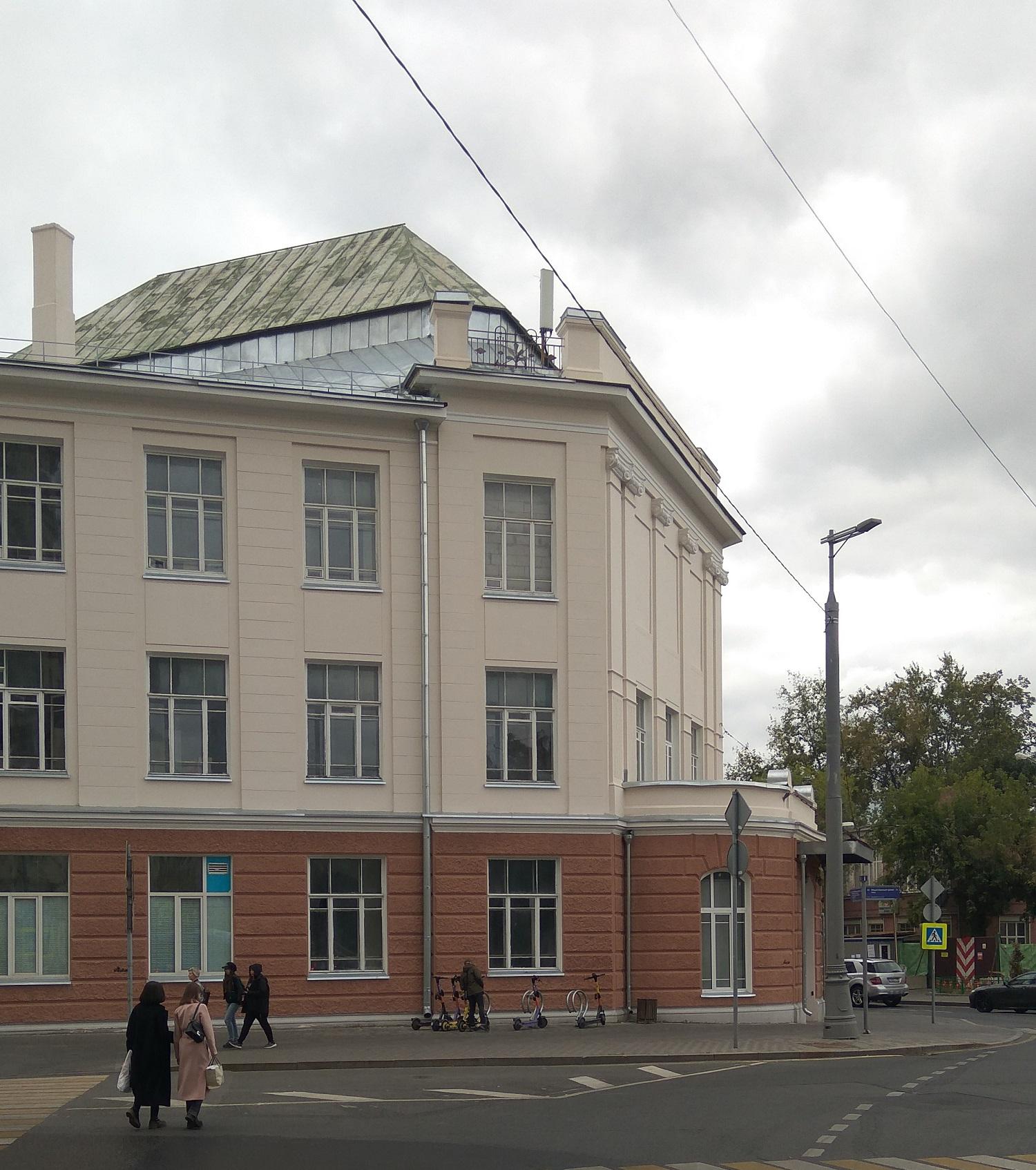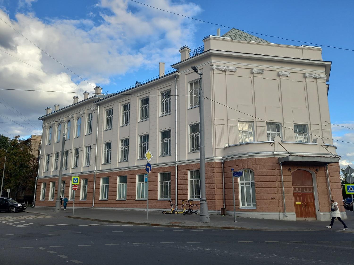 Здание было построено в 1914 году как учебный корпус Московских высших женских курсов. Основной комплекс располагался в начале тогдашней Малой Царицынской (сейчас Малой Пироговской) улицы.