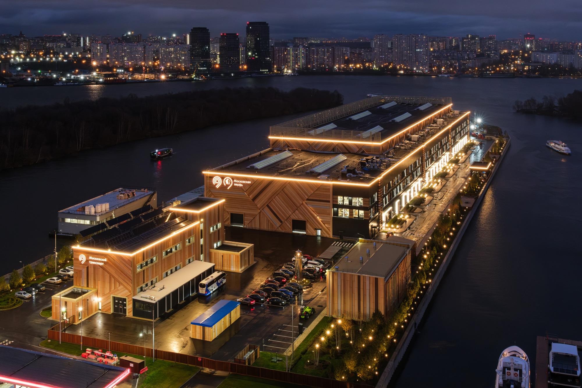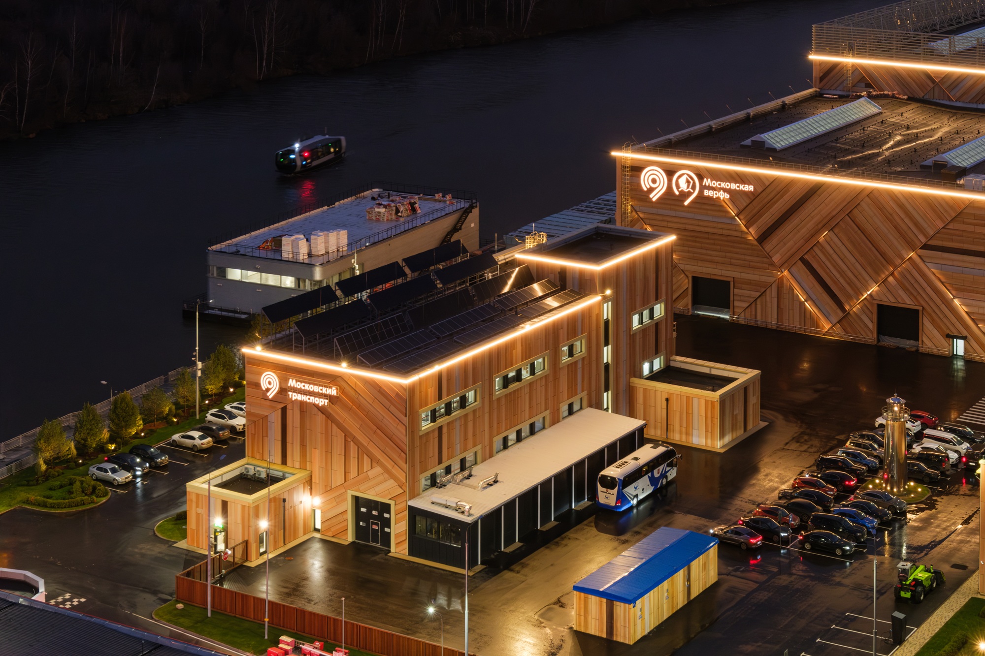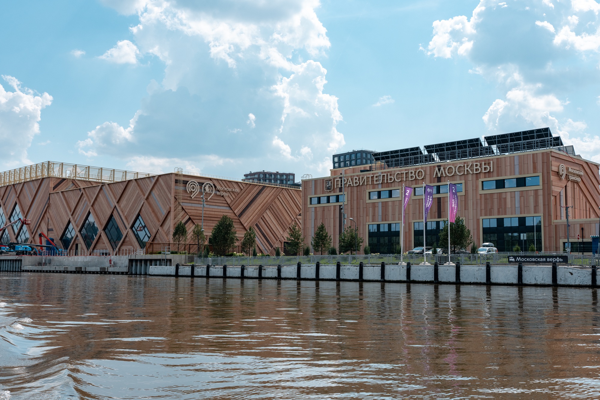 Современная Московская верфь гармонично встроена в городскую среду и является примером экологичного промышленного объекта. На крыше размещены солнечные батареи, а системы очистки и фильтрации исключают попадание отработанной воды в Москву-реку. Архитектурный образ комплекса отсылает к традициям российского деревянного кораблестроения: фасады выполнены из материалов отечественного производства, стилизованных под натуральную древесину. При благоустройстве укреплены берега, организованы удобные подходы для судов и создана инфраструктура для безопасного обслуживания флота. Рядом с производственными корпусами появилась прогулочная зона, детская площадка и места отдыха для жителей района.