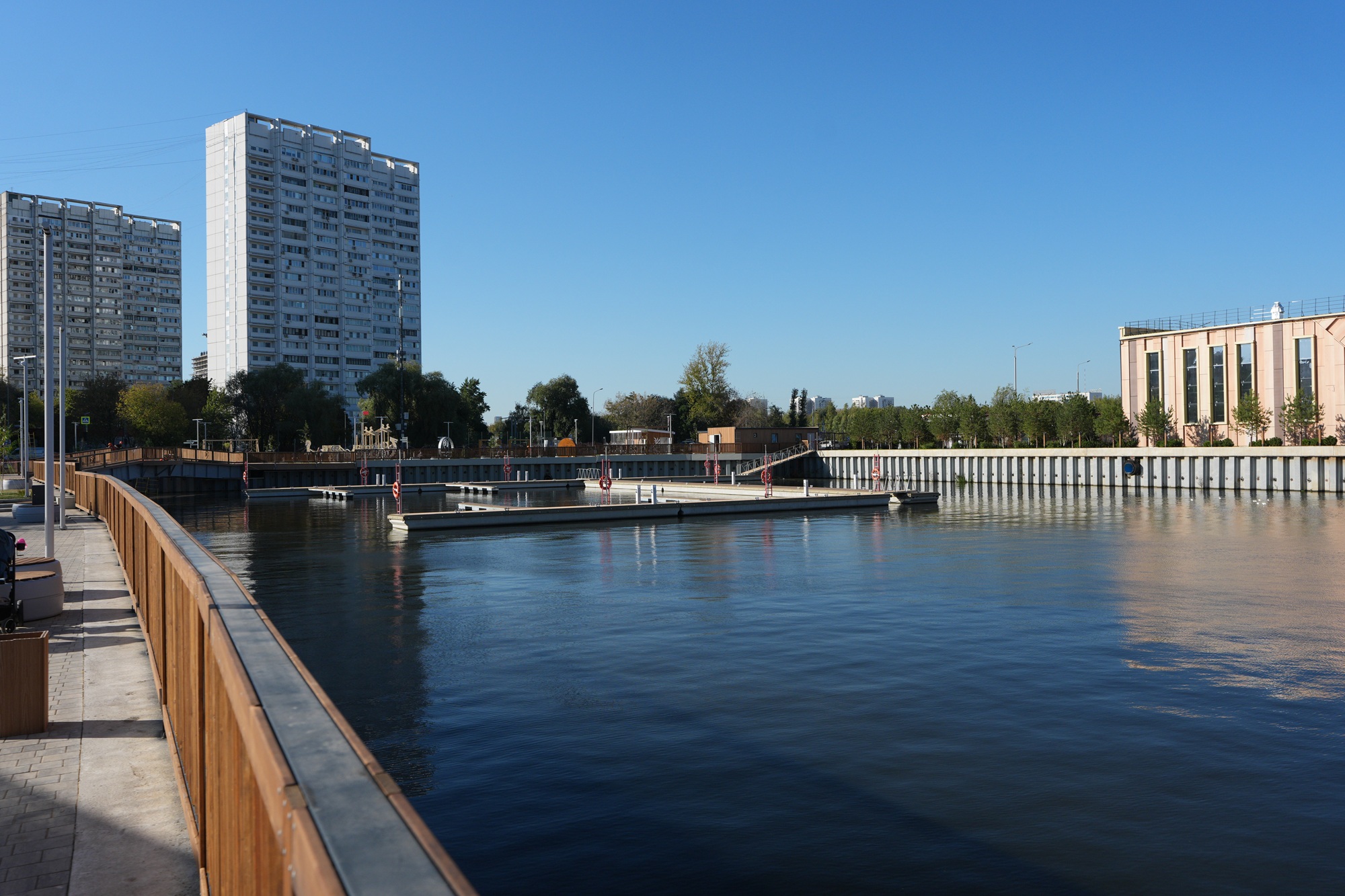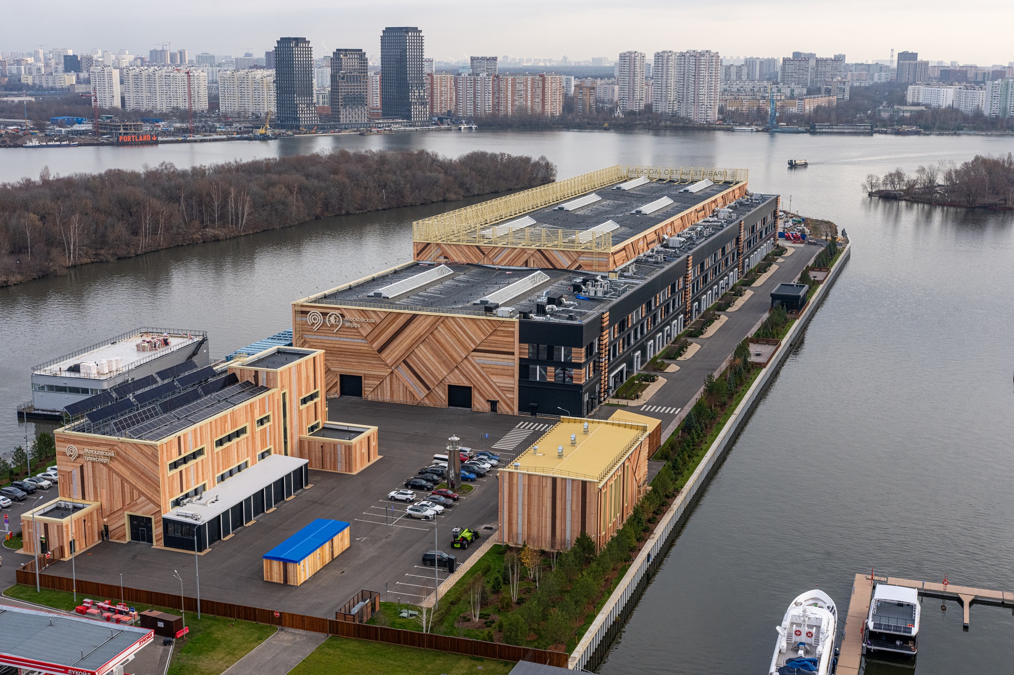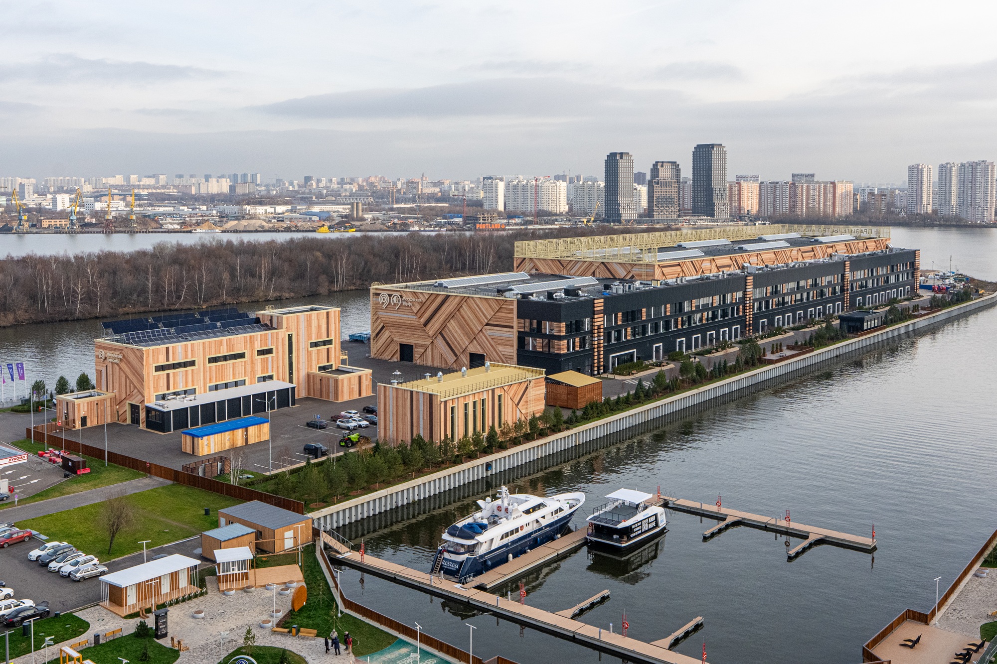 Современная Московская верфь гармонично встроена в городскую среду и является примером экологичного промышленного объекта. На крыше размещены солнечные батареи, а системы очистки и фильтрации исключают попадание отработанной воды в Москву-реку. Архитектурный образ комплекса отсылает к традициям российского деревянного кораблестроения: фасады выполнены из материалов отечественного производства, стилизованных под натуральную древесину. При благоустройстве укреплены берега, организованы удобные подходы для судов и создана инфраструктура для безопасного обслуживания флота. Рядом с производственными корпусами появилась прогулочная зона, детская площадка и места отдыха для жителей района.