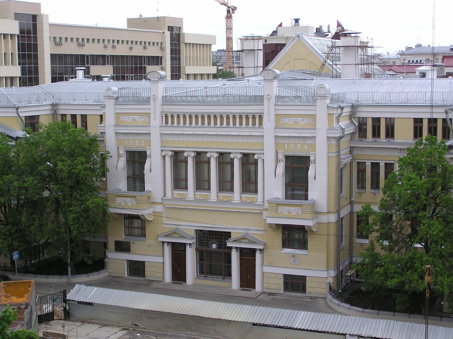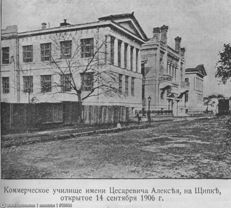 Мужское и женское коммерческие училища, а также Коммерческий институт, расположенные в Замоскворечье, стали одними из самых престижных учебных заведений Москвы начала XX века. Здание мужского коммерческого училища имени цесаревича Алексея было построено в 1903–1904 годах по проекту архитектора Александра Устиновича Зеленко в неоклассическом стиле. Рядом с ним, в 1905 году, было возведено здание для Женского коммерческого училища с домовой церковью Иконы Пресвятой Богородицы «Взыскания Погибших», спроектированное архитектором Николаем Львовичем Шевяковым.