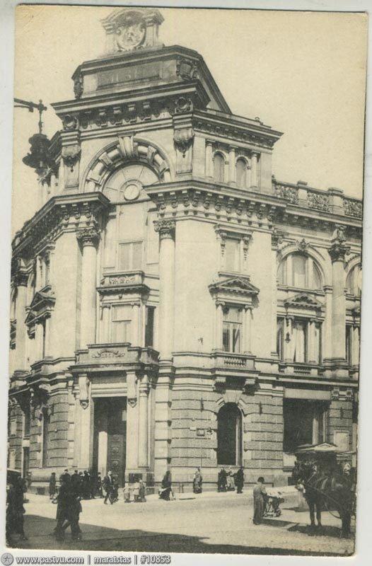 Архитектор С.С. Эйбушитц при участии инженера В.Г. Шухова (его конструкциями перекрыт операционный зал) возводит к 1898 г. красивый дом с крупными ордерными формами, характерными для римского барокко. Здание облицовано радомским песчаником и украшено орнаментом из цинка. Оно очень удачно поставлено на изломе Кузнецкого моста, являясь одной из его основных доминант, и замыкает перспективу от Неглинной улицы. Первоначально над угловым фасадом возвышался небольшой аттик, утраченный в 1930-е гг.