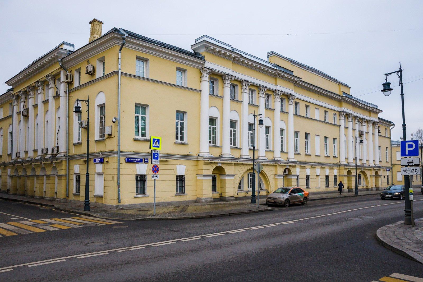 Здание строилось, как это нередко бывало в Москве, в несколько приемов. Древнейшая его часть – двухэтажный Г-образный корпус, сохранивший историческую планировку – появился в 1764 году. Тогда углы здания были скруглены. Архитектор неизвестен: некоторые краеведы не исключают причастности к проекту Матвея Казакова. Затем, на рубеже веков, дом, как предполагают исследователи, был надстроен, а также получил яркий элемент классического оформления – сложно раскрепованный портик на аркаде, которая повторяла его ритм.