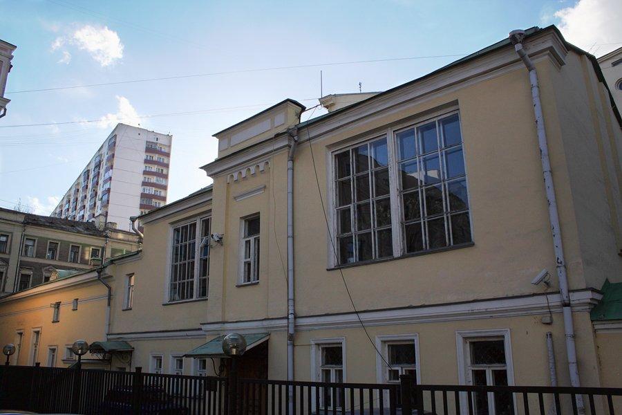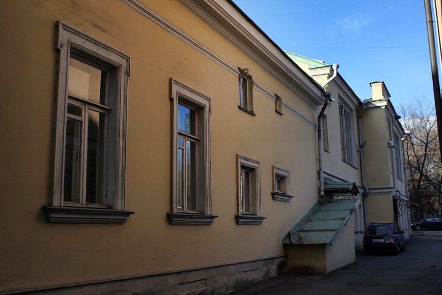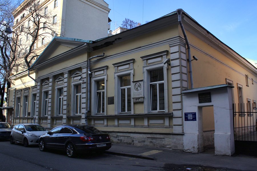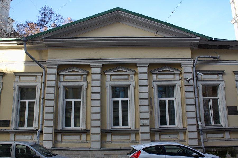 Этот скромный одноэтажный особняк, чья история богаче, чем кажется с первого взгляда, находится между Пречистенкой и Арбатом, в бывшей стрелецкой слободе. Небольшой дом с фасадами в стиле эклектики, постройки второй четверти XIX века, много раз перестраивался, и практически полностью потерял свой первоначальный ампирный декор.