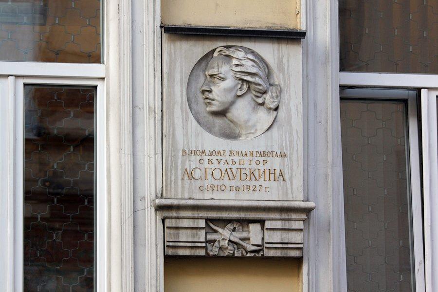 Особняк перестраивался по инициативе купцов Сабашниковых, живших в соседнем несохранившемся доме № 6, под художественные мастерские. С 1910 по 1927 годы здесь находилась мастерская скульптора Анны Семеновны Голубкиной. Одна из самых известных русских женщин-скульпторов, А.С. Голубкина родилась в мещанской семье, училась в Московском училище живописи, ваяния и зодчества, преподавала на Пречистенских рабочих курсах и во ВХУТЕМАСе. Многие из её произведений стали классикой станковой скульптуры и находятся в различных музеях России и мира, в том числе в Третьяковской галерее и Русском музее. Один из самых известных горельефов Голубкиной – «Пловец» - расположен над правым входом в театр МХТ. им.Чехова в Камергерском переулке.