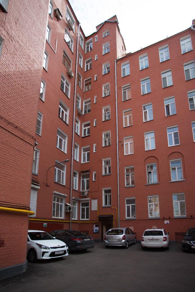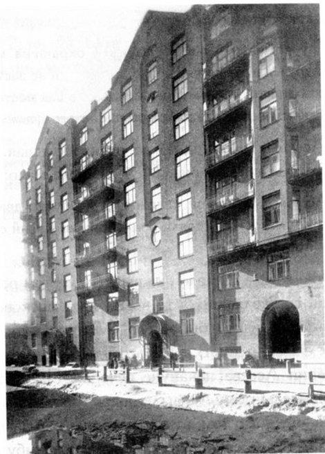 В 1914 году архитектор Николай Сильвестрович Курдюков выстраивает два доходных дома Московского художественного общества, при котором существовало МУЖВЗ. Значительный их отступ от здания училища обеспечивал полноценное освещение квартир. Одно из них, расположилось по адресу: ул. Мясницкая, д.21 стр.8. Строительная контора Санкт-Петербургского торгового дома, открывшаяся в Москве в 1909 году, возвела дом по последнему слову техники: центральное отопление, канализация, газовые плиты, электроосвещение, лифты (инженеры И.Маршах и А.Финкельштейн). Восьмиэтажный, четырехподъездный дом красного крашеного по кладке кирпича имел перекрытия из железобетона по металлическим балкам. Оконные проемы разной формы и вразброс расположенные балконы задают своеобразный четкий ритм. Форма проездной арки во двор повторяется в арочных козырьках подъездов. Торцевые части дома и ризалиты венчают треугольные фронтоны. Курдюков является архитектором других рядом расположенных построек МУЖВЗ, также работал педагогом в училище до революции.