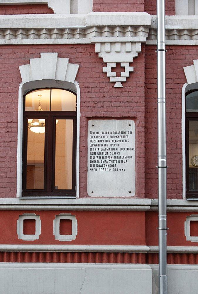 Школа вошла в историю во время первой русской революции 1905 г. В декабре 1905 г. район Пресни становится очагом вооруженного восстания. Улицы, в том числе Большой Предтеченский переулок, были перегорожены баррикадами. В здании училища расположились столовая для дружинников и пункт набора добровольцев в санитарные отряды.