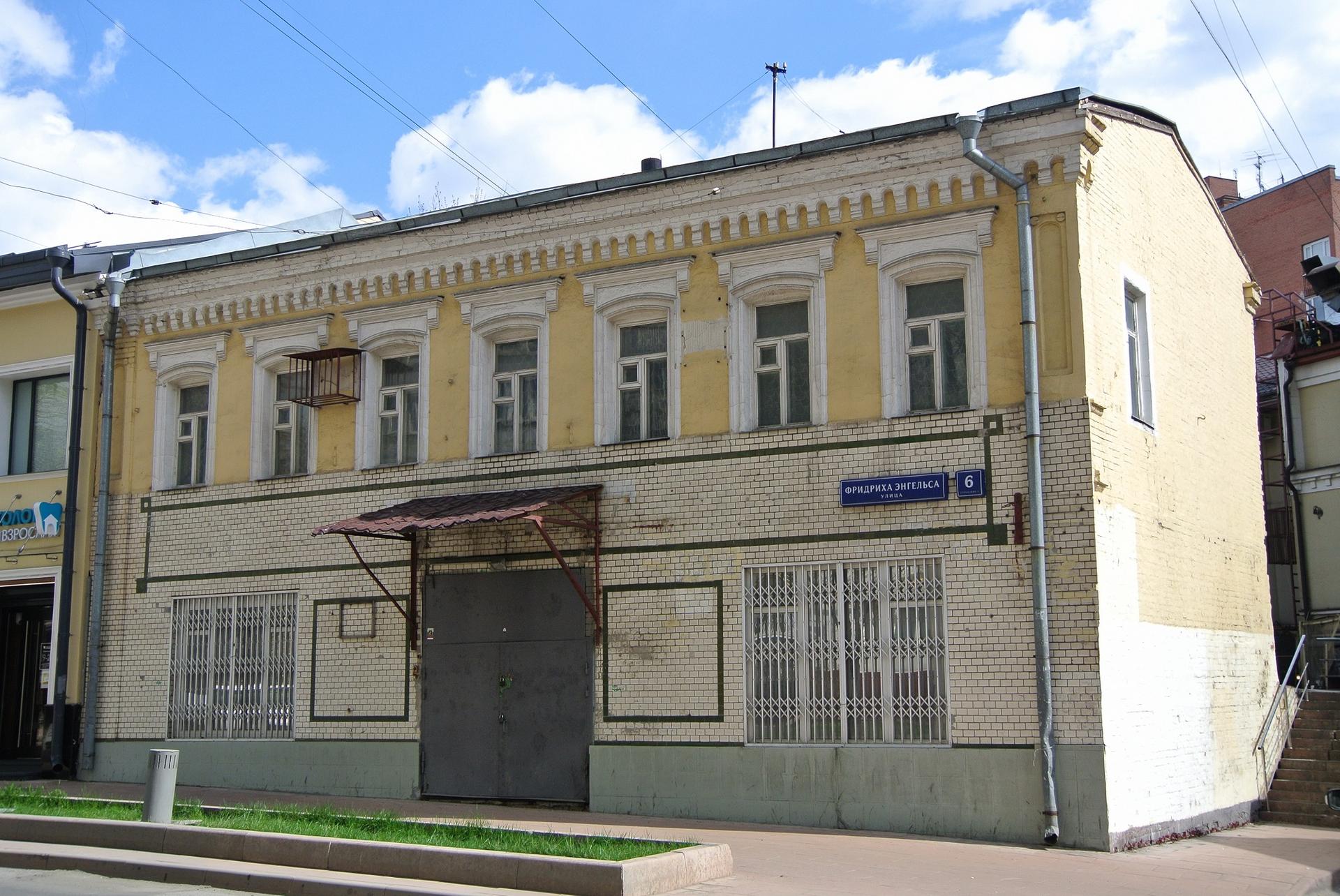 Еще один объект — жилой дом И.А. Калинина с лавками, расположенный по адресу: улица Фридриха Энгельса, дом 6, строение 1, — был возведен в 1900-х годах на основе постройки начала XIX века. Это каменный двухэтажный дом с подвалом, первый этаж облицован красивой глазурной плиткой, а второй имеет гладкую поверхность, декорированную штукатурными элементами в стиле эклектики.