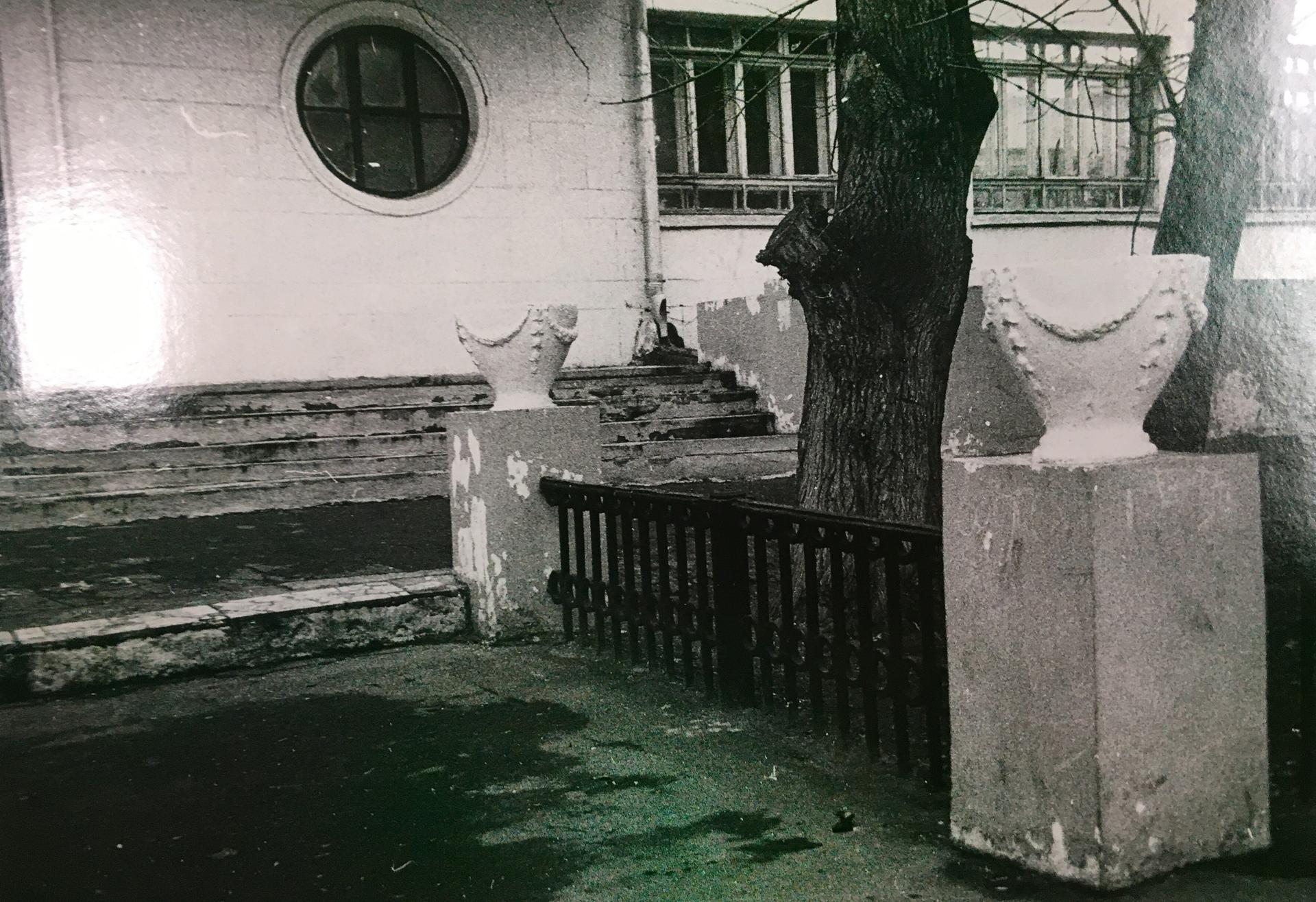 В 1950-е гг., когда к дворовому фасаду здания был пристроен спортзал, вдоль Садовнической набережной появилась невысокая металлическая ограда с гипсовыми вазонами перед ступенями, ведущими к зданию. В 1970-е гг. ограда стала бетонной, сегодня двор заасфальтирован и занят коммунальными постройками.