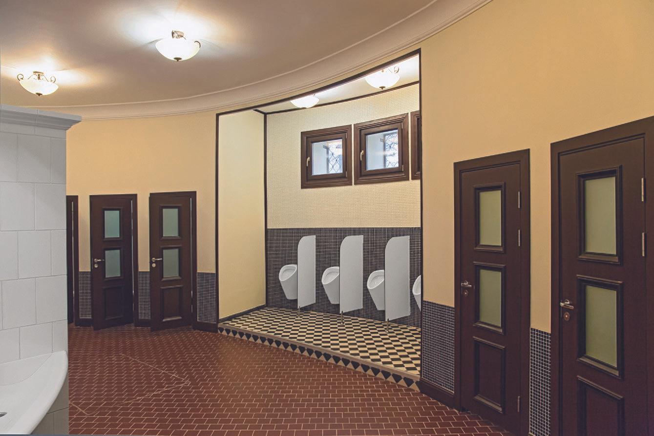 По архивным чертежам были восстановлены первоначальная форма, конструкция и расстекловка двух световых фонарей. Реконструкция заложенного фасадного оконного проема в мужском отделении придало зданию архитектурную завершенность. Все заполнения оконных и дверных проемов заменены на реставрационные с восстановлением исторических габаритов. Особо стоит отметить работы по приданию дверным полотнам уличных входов исторического вида. Не имея достаточно информации, специалисты провели ряд натурных работ и архивных изысканий, чтобы найти аналоги, выполненные в схожей стилистике и в тот же период времени. В целом все элементы декора экстерьера сверялись с обнаруженной фотографией 1930-х годов.