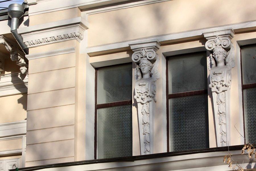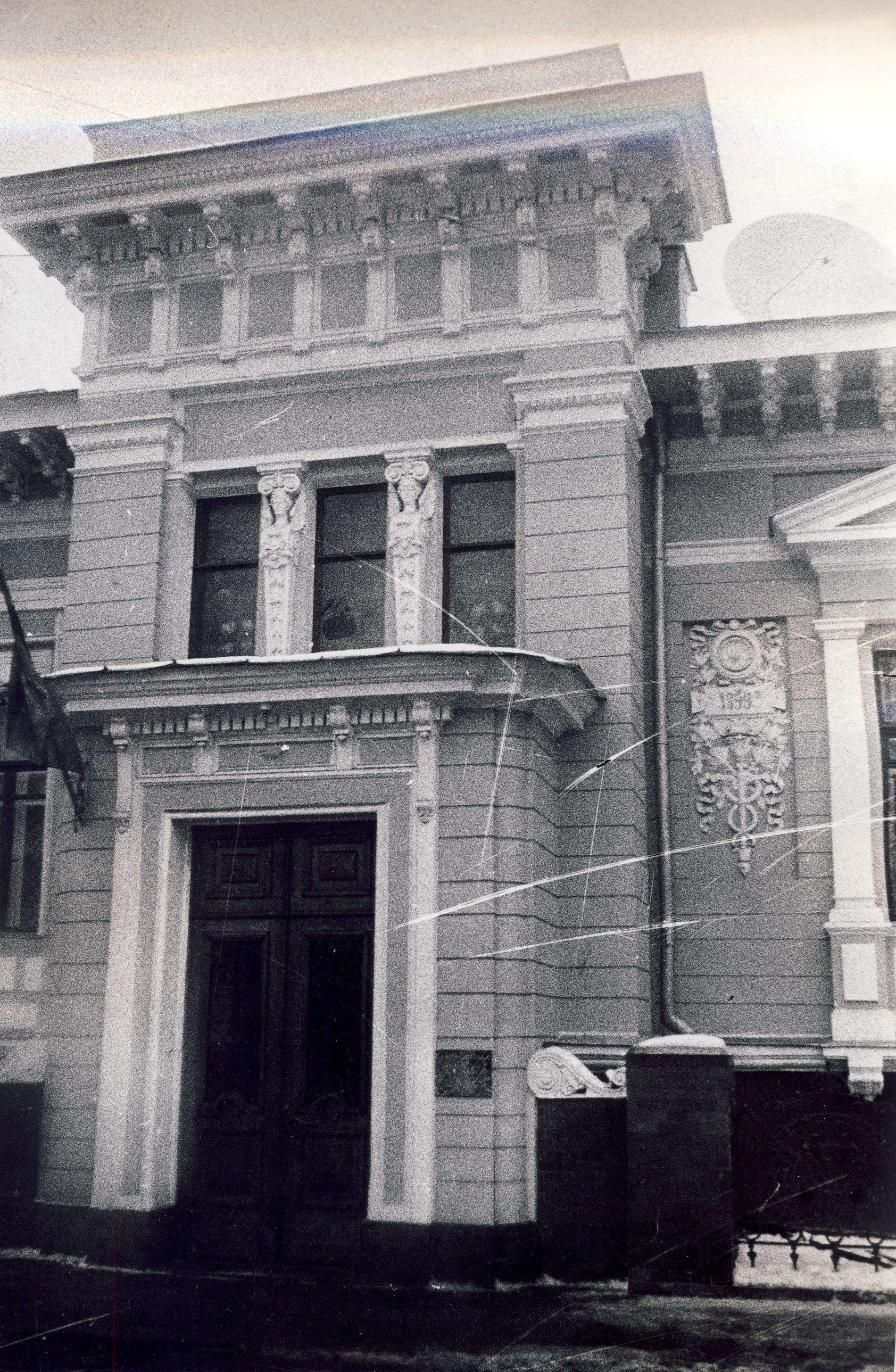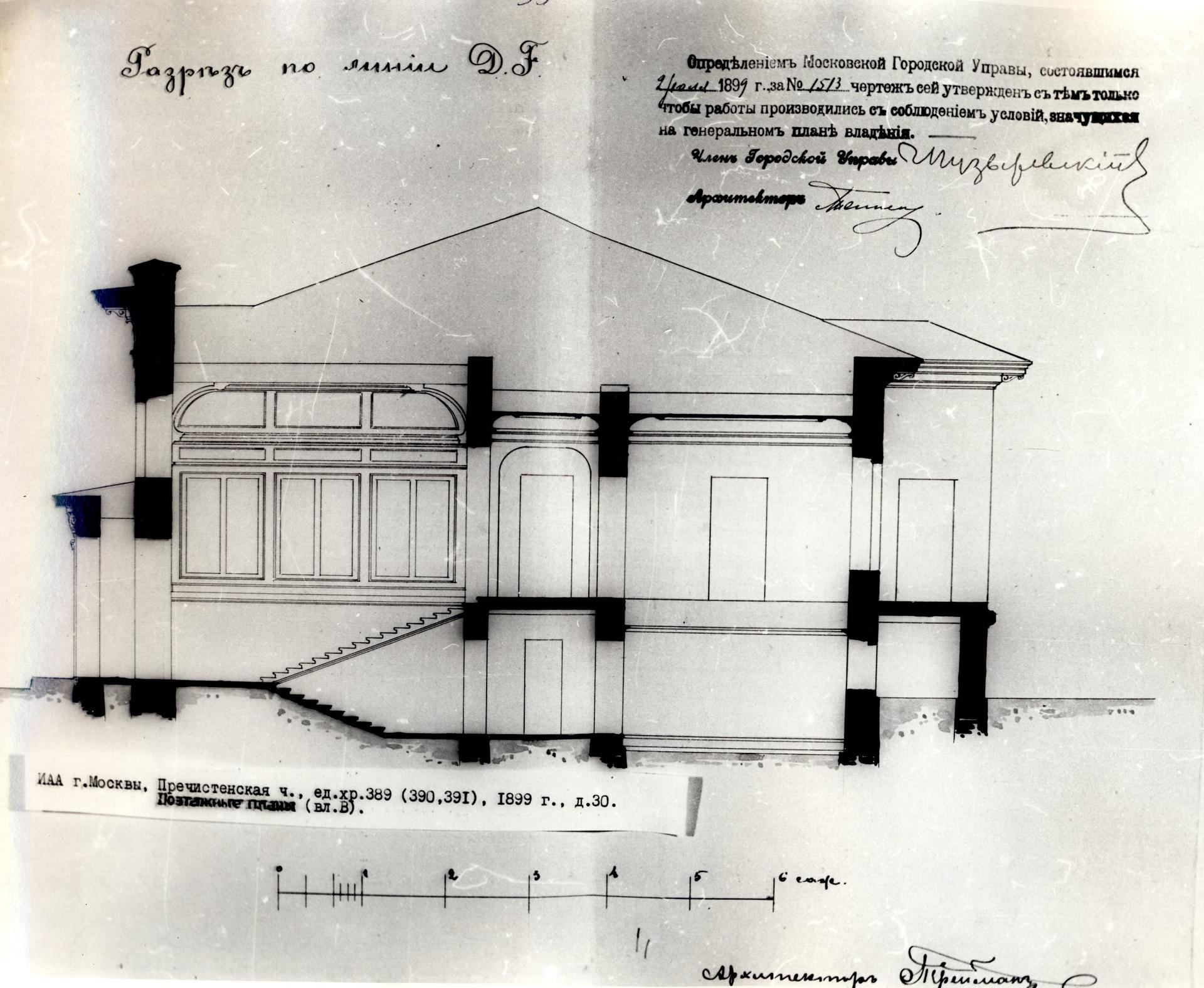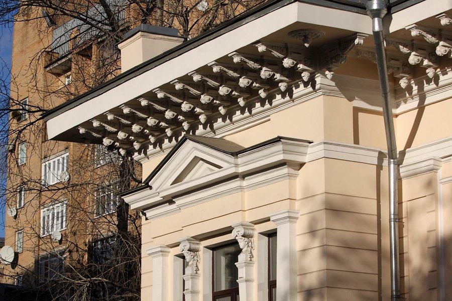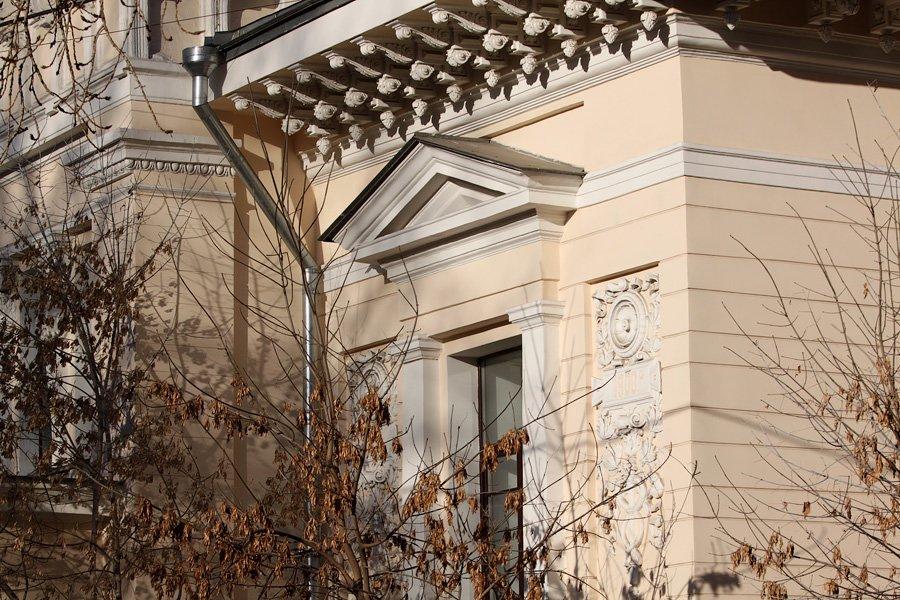 Одноэтажный особняк под номером 16 в Денежном переулке был выстроен в 1900-м году по проекту архитектора Треймана, с отступом от красной линии переулка. Фактически на красную линию выходит только парадный вестибюль здания, а основной объем уходит вглубь владения.