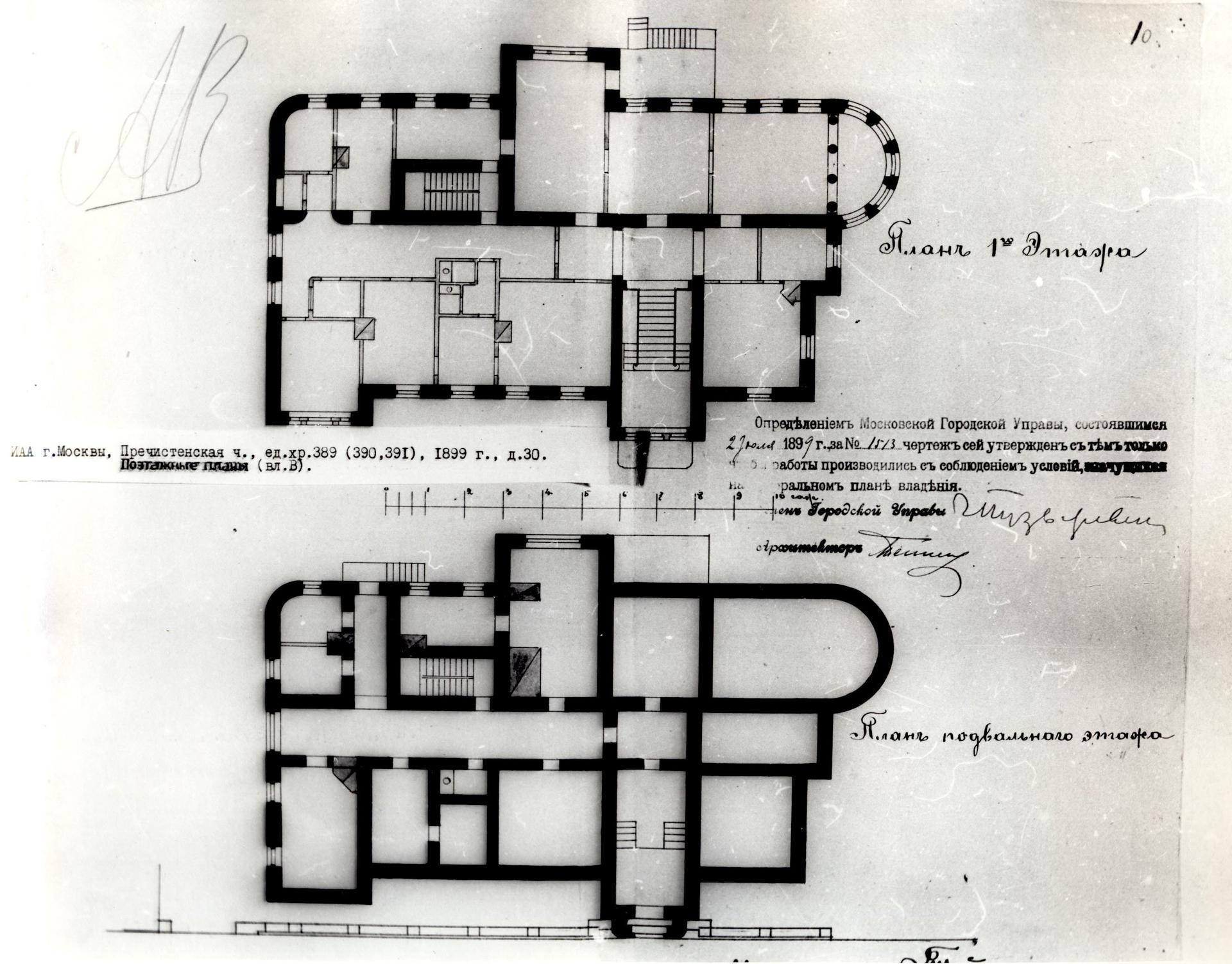 В 1802 году владение в Денежном переулке переходит к новой владелице, губернской секретарше Катерине Сергеевне Заборовской, которая решает выстроить одноэтажный деревянный жилой дом на красной линии переулка. На протяжении столетия владение сменило нескольких хозяев и обросло мелкими постройками, однако еще в 1891 году главный дом, заметно обветшавший, хранил архитектурный облик первой трети XIX века. Горизонтальный руст стен первого этажа, стилизованные сандрики и филенки окон, ниша с вазой, обрамленная рустом; рустованные пилястры мезонина, лепная гирлянда, украшающая аттик. И только в 1899 году очередная новая владелица просит разрешить ей снос всех существующих построек владения с дальнейшей постройкой каменного особняка.
