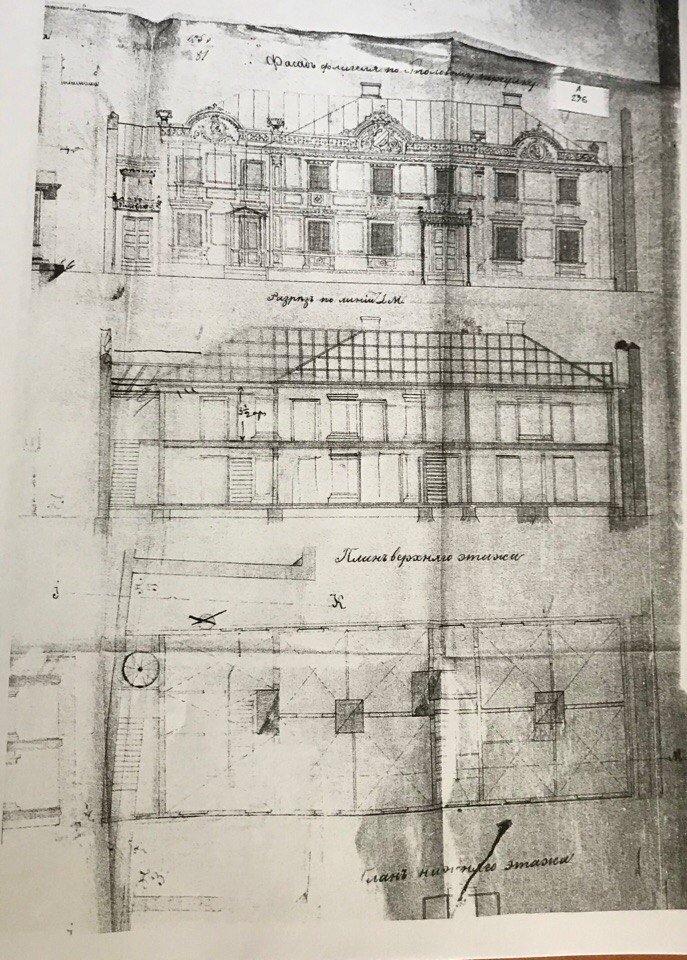 Первые упоминания о здании относятся к середине XVIII в., когда территория входила в состав двух обширных усадеб: вдовы графини Е. Р. Скавройской и надворного советника Ф. М. Безсонова. С этого времени и до начала XX в. данный участок был на периферии самостоятельных владений.