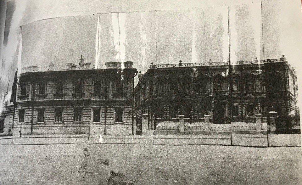 Здание построено в 1902 г. как главный дом обширной усадьбы по проекту архитектора Н. Г. Зеленина. Дом был поставлен в глубине двора, его четкий прямоугольный объем с ризалитами развернут параллельно линиям улиц. По проекту главный вход осуществлялся с северного парадного фасада, через небольшой центральный ризалит. Планировка здания симметричной не была. Две параллельные продольные несущие стены разделяли дом на две части: северную и южную. В северной части первого этажа – парадные помещения, между двумя продольными несущими стенами – вестибюль, парадная передняя (холл) и трехмаршевая лестница, ведущая на второй этаж. На втором этаже в северной части – анфилада комнат, в южной – вероятно, спальни. В полуподвале размещались кладовые, кухни и шесть комнат.
