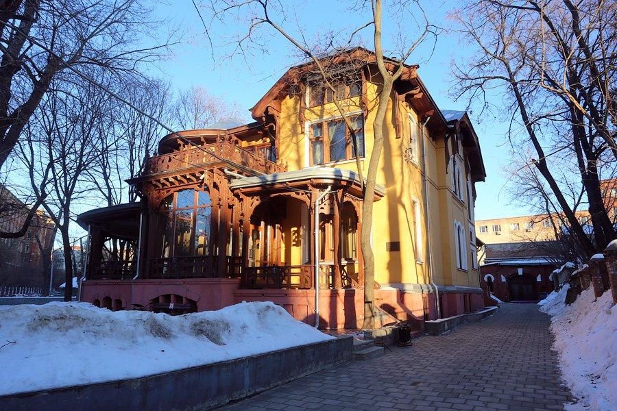 В 1893 году Савва Морозов, знаменитый купец и промышленник, решил купить старую усадьбу Аксаковых на Спиридоновке и построить для своей любимой жены Зинаиды особняк. Молодой архитектор Фёдор Шехтель создал здесь настоящий средневековый замок, сделавший его знаменитым и модным архитектором, к которому выстроилась очередь из богатых заказчиков.