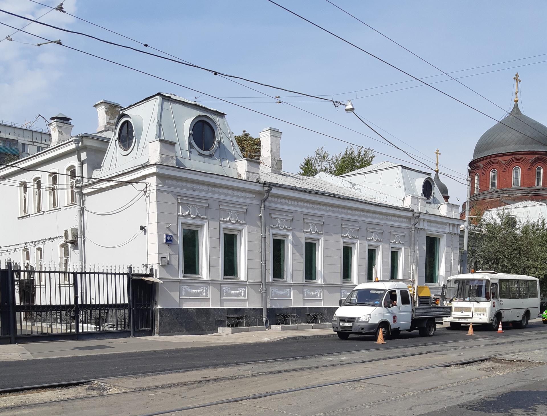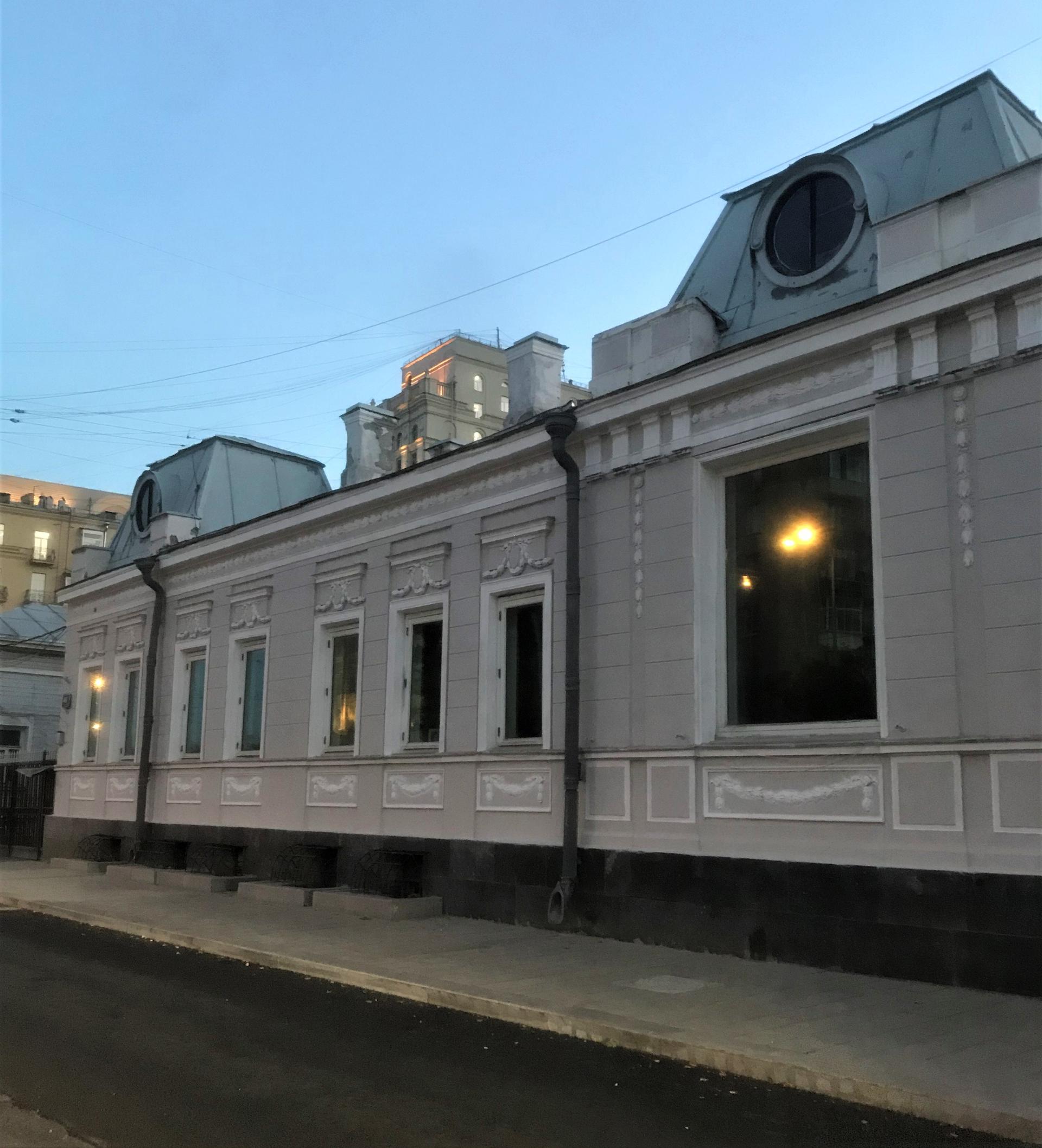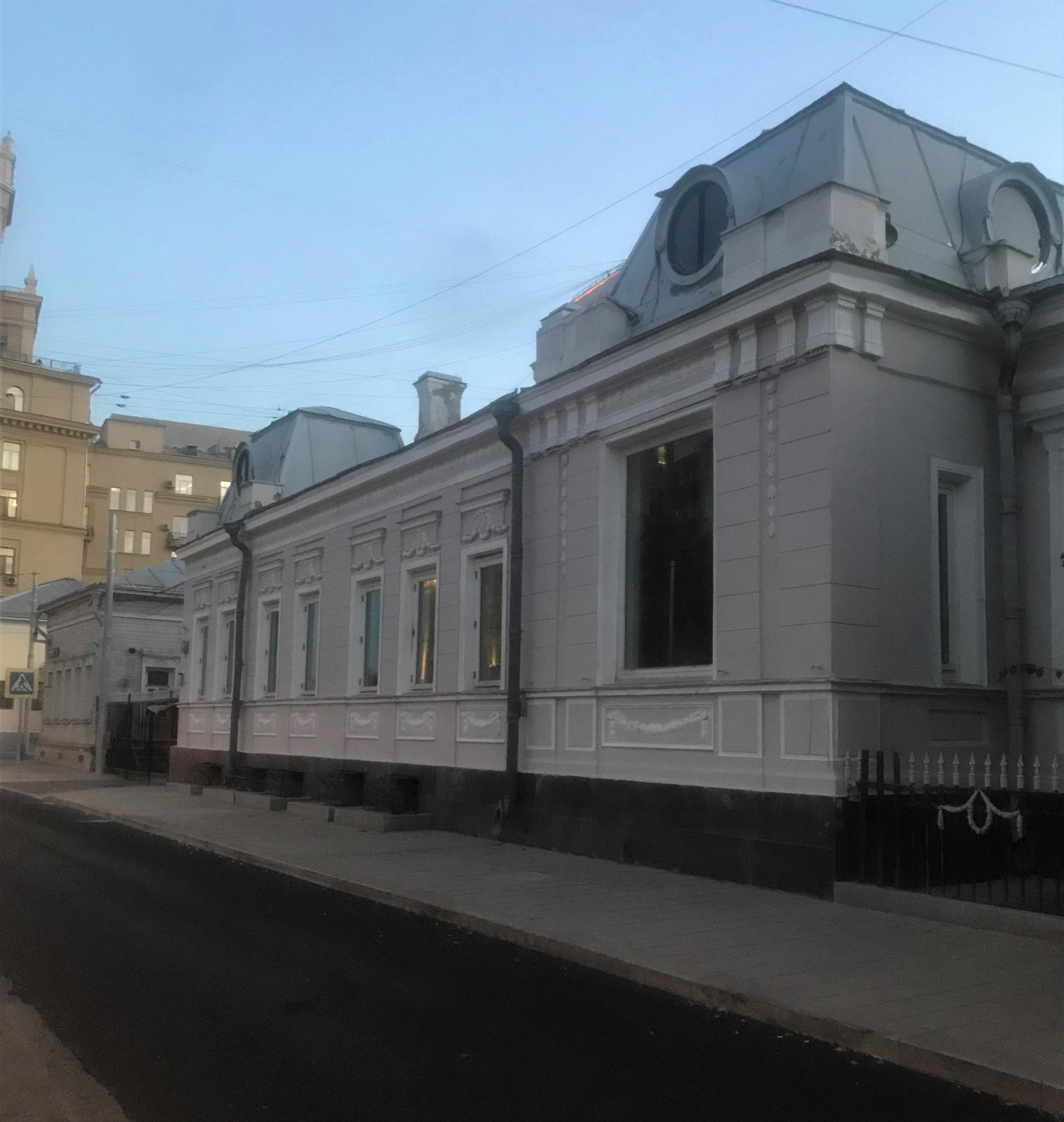 Длинный одноэтажный особняк расположен в конце Новокузнецкой улицы, недалеко от ее пересечения с Садовым кольцом. Несмотря на некоторую аскетичность и отсутствие пышного декора на фасаде, здание составляет фрагмент дореволюционной застройки улицы, значительная часть которой была утрачена после войны.