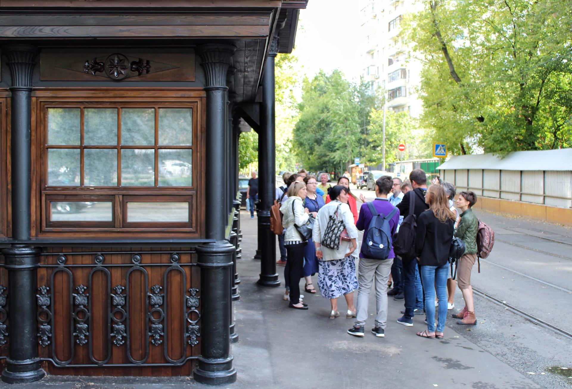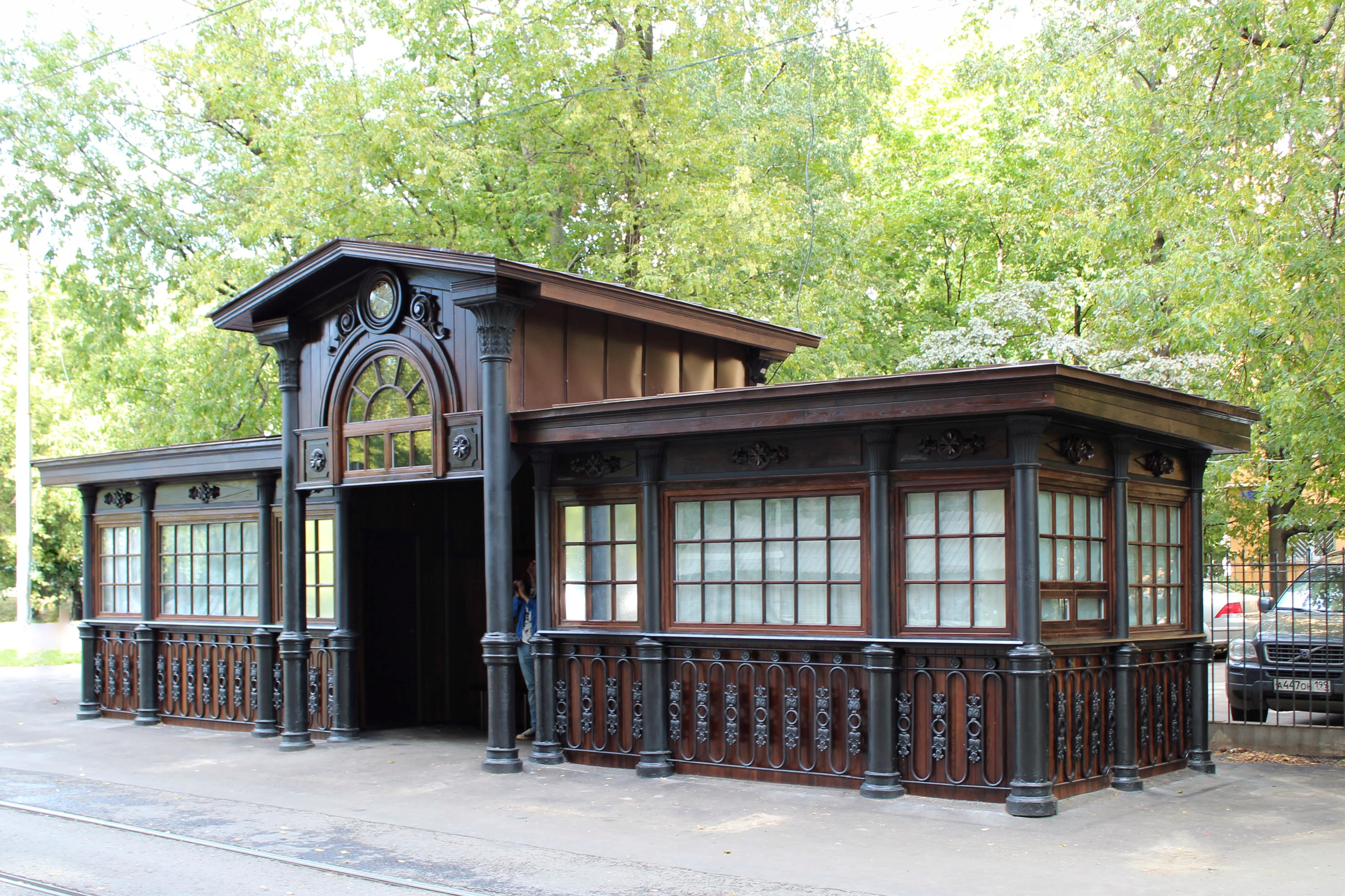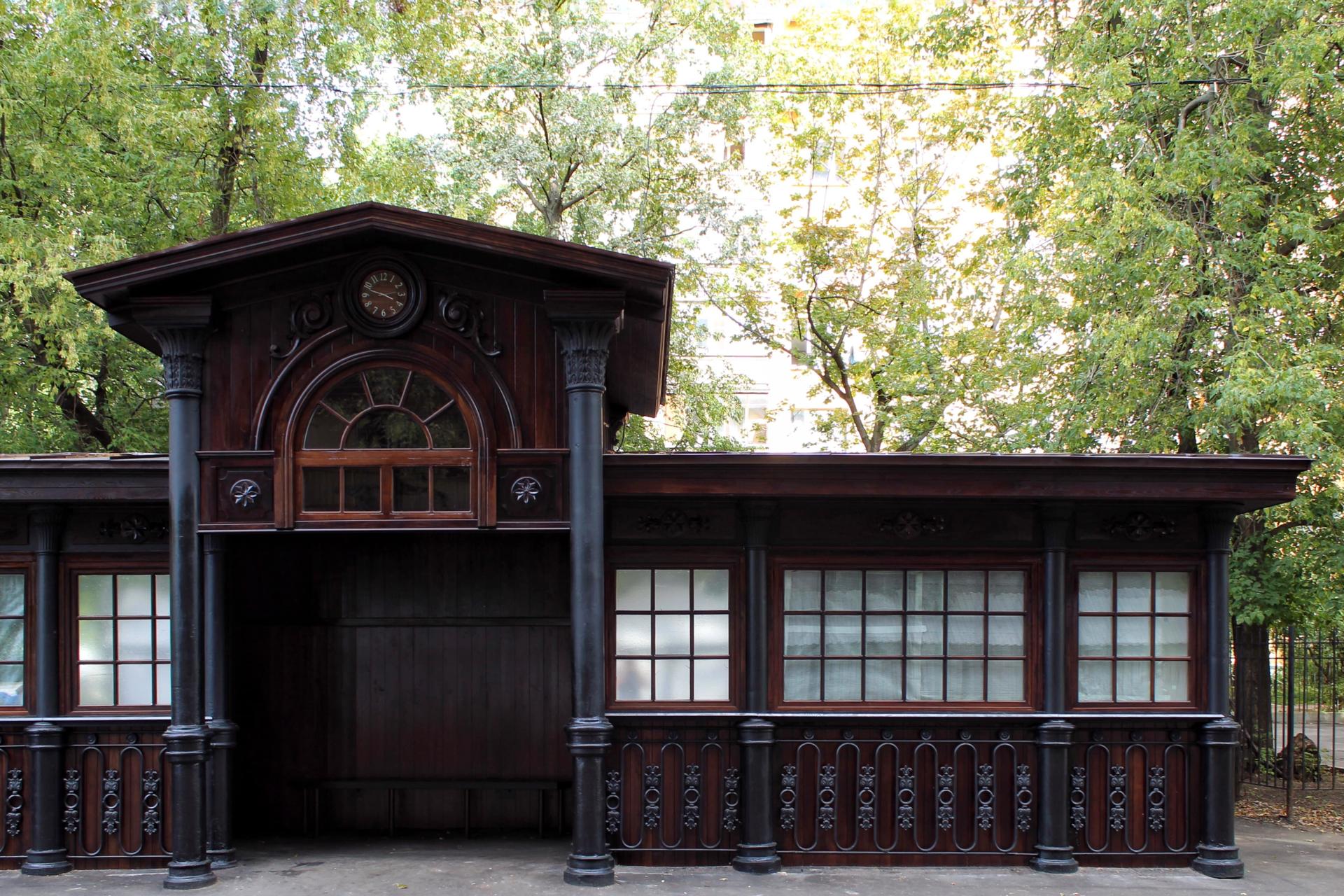 В начале 1890-х годов на всех остановках новых линий парового трамвая по проекту архитектора Когновицкого были выстроены деревянные павильоны для пассажиров. Франц Андреевич Когновицкий — один из признанных мастеров московского модерна, окончивший Московское училище живописи, ваяния и зодчества с серебряной медалью.