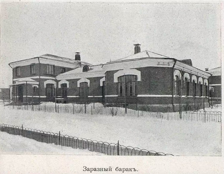 Острозаразное отделение было рассчитано на 30 кроватей. Внутренняя его структура включала павильон на 20 кроватей, одну палату на 4 кровати, три палаты по две кровати. Кроме того, в здании располагались буфет, клозет, комната для дневного пребывания больных, лаборатория.