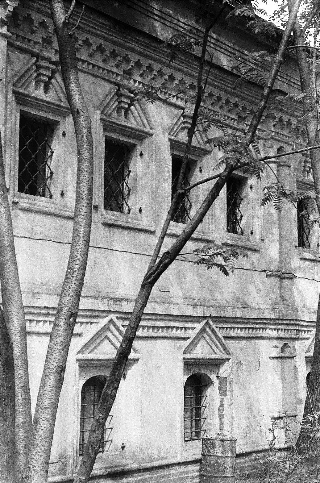 Первый этаж был хозяйственным и представлял собой четыре обширные палаты, две из них были погребами и соединялись лестницей со вторым этажом. Второй этаж – жилой, с анфиладной структурой. В переулок «смотрят» парадные покои, а более мелкие подсобные помещения выходят во двор.