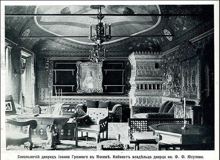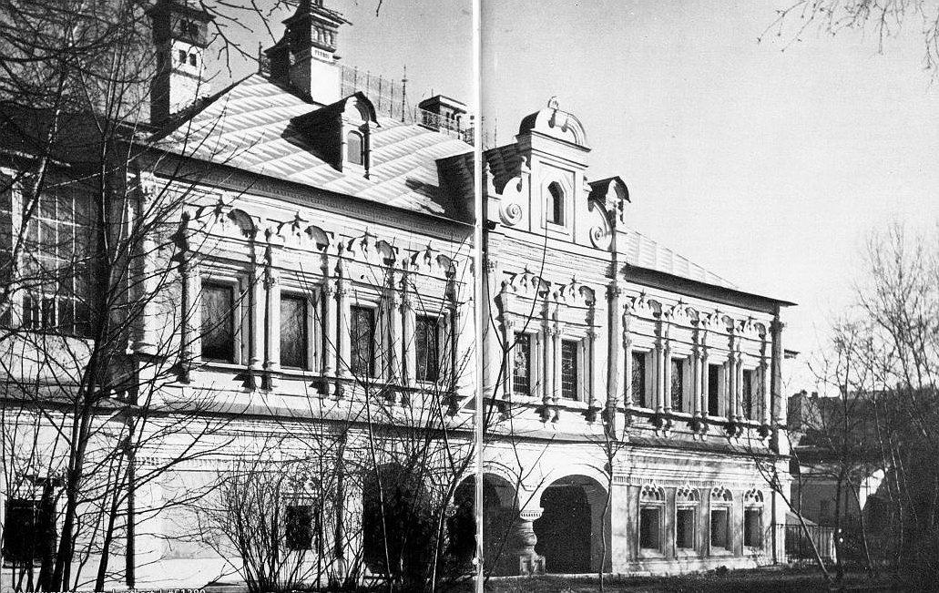 На рубеже XVI и XVII веков, на окраине Москвы, появился красавец терем, известный ныне как палаты бояр Волковых. По легенде, эти палаты принадлежали царю Ивану IV Васильевичу и служили его охотничьим дворцом. Вероятно, в конце XVII века Пётр I подарил терем своему сподвижнику Петру Шафирову. 15 сентября 1727 г. они перешли во владение князя Г. Д. Юсупова и принадлежали его роду в течение 190 лет.
