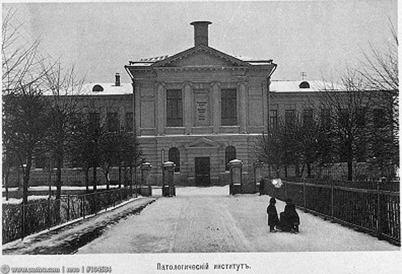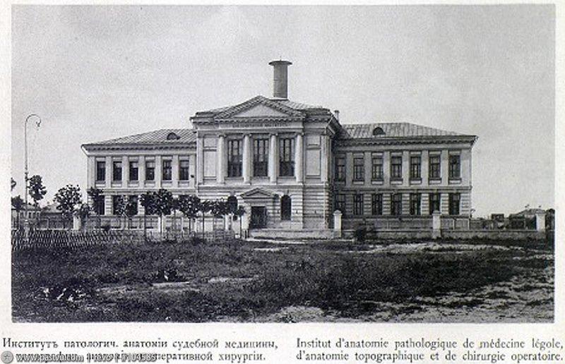 Перспективу зданий Университетского клинического городка замыкает Институт патологической анатомии, судебной медицины и оперативной хирургии, выстроенный в 1891 г. по проекту К.М. Быковского, ставшего главным архитектором комплекса.