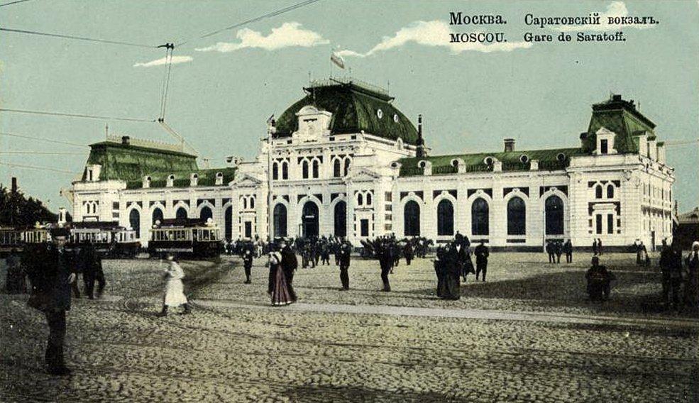 Построенный по проекту архитектора Красовского вокзал первоначально называли Саратовским, так как именно Саратов являлся центром Рязано-Уральской железной дороги. В то же время вокзал назывался и Павелецким, в справочниках того времени присутствуют оба названия. Вокзал построен по канонам своего времени: симметричное здание в два этажа с центральной трёхэтажной частью и с мансардами над выступающими боковыми корпусами. Наружная поверхность стен облицована декоративным кирпичом, цоколь – тёсаным камнем, вестибюль и карнизы в залах имели лепные украшения. Вокзал открылся для пассажиров 15 октября 1900 года.