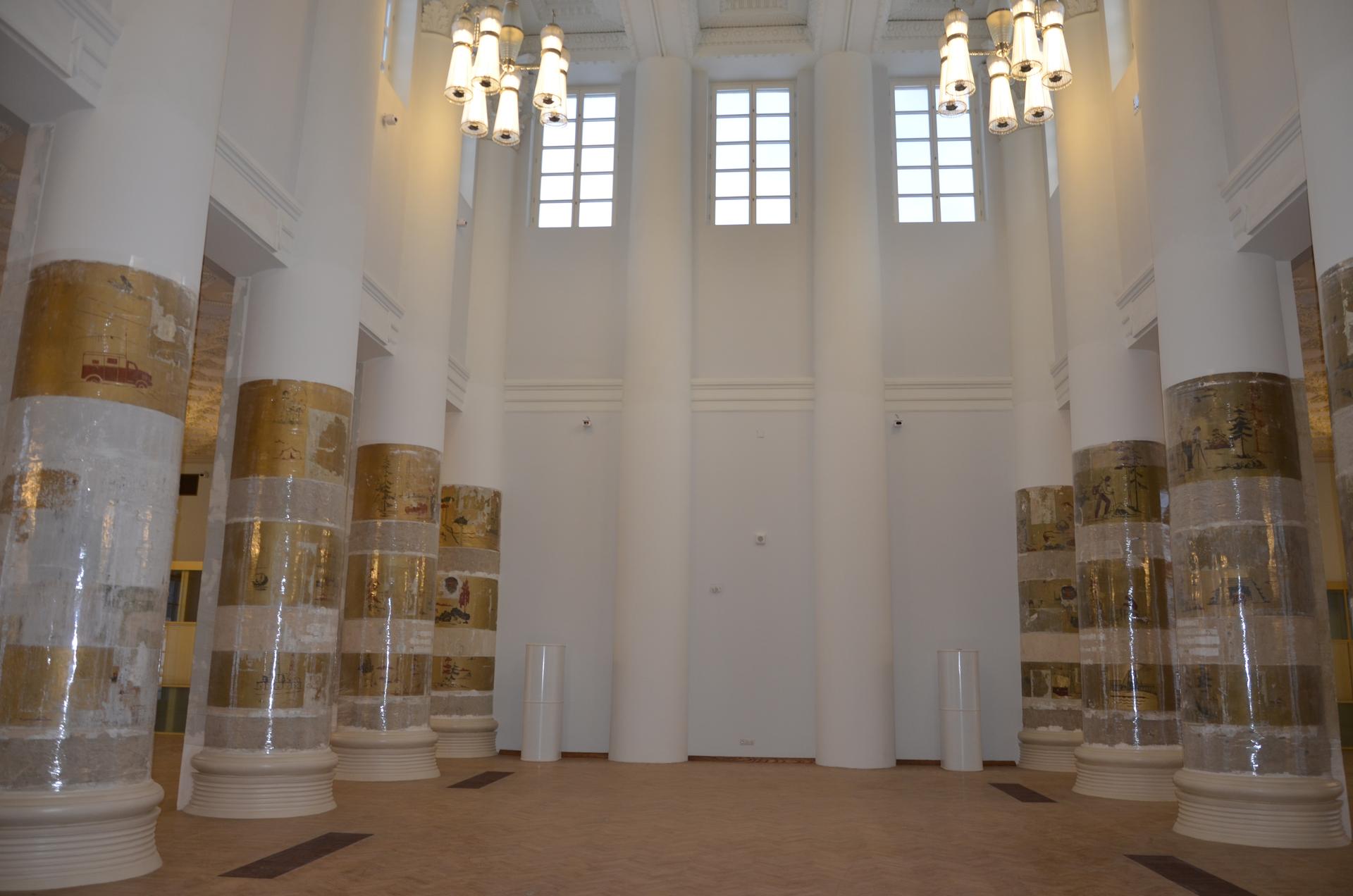 Внутри павильона восстановили лепной декор потолков всех залов, воссоздали паркет. Поскольку к началу реставрации все исторические люстры здания были утрачены, специалисты изготовили новые с помощью фотографий и сохранившихся чертежей.