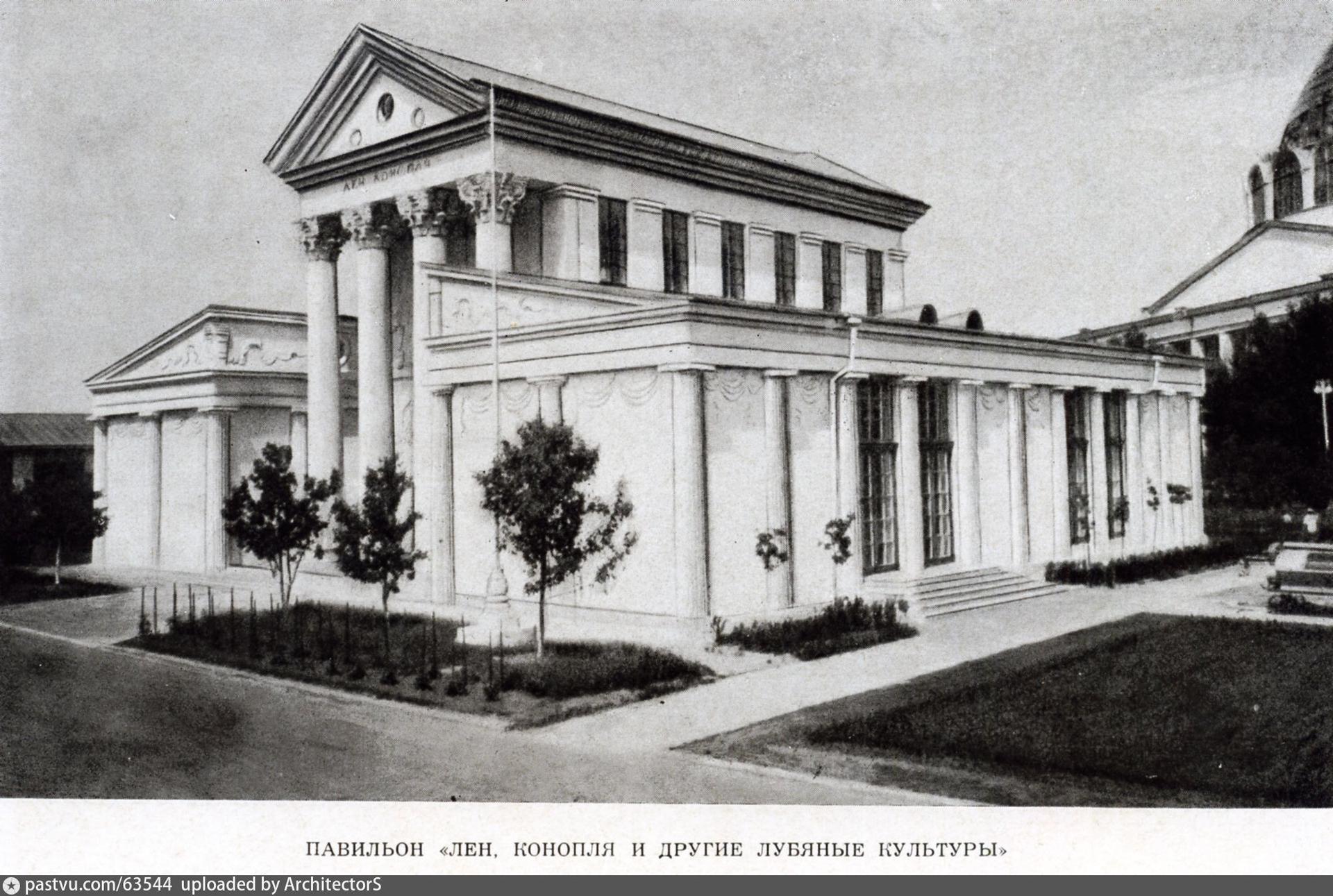 В павильоне демонстрировалась продукция колхозов, которые культивировали лубяные культуры, а также научные разработки, технологии для обработки волокна, готовая продукция – текстиль, канаты, веревки.