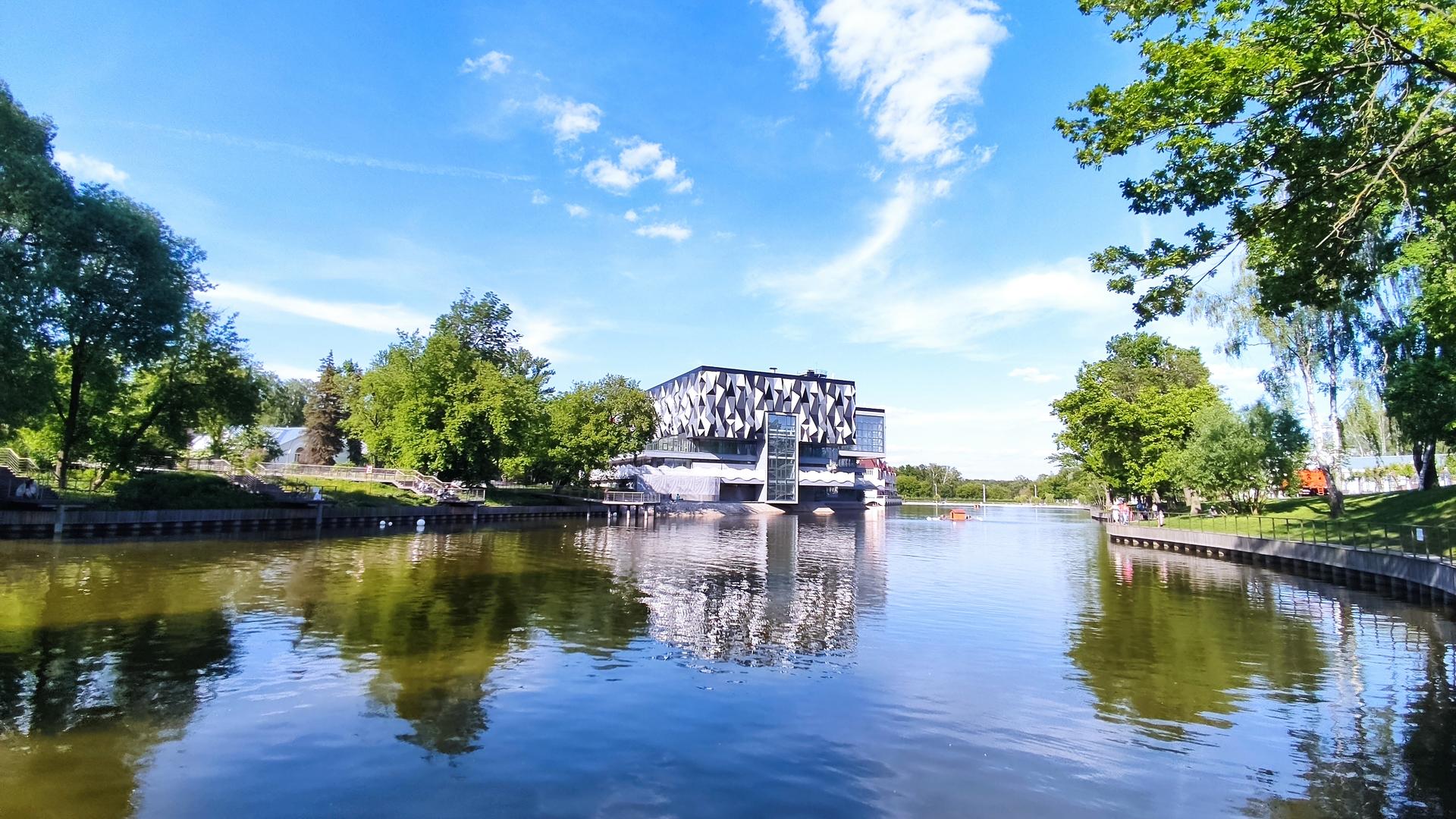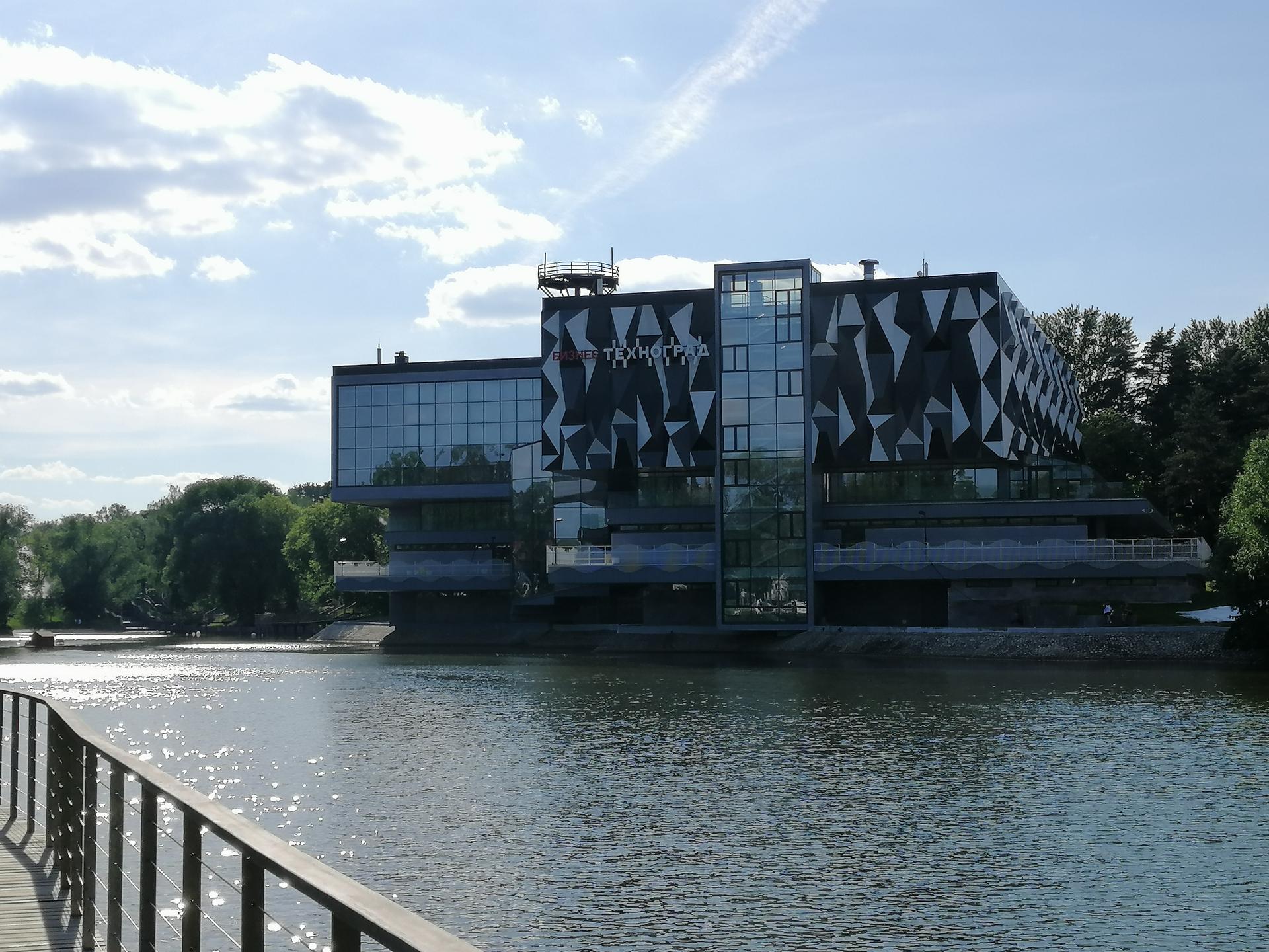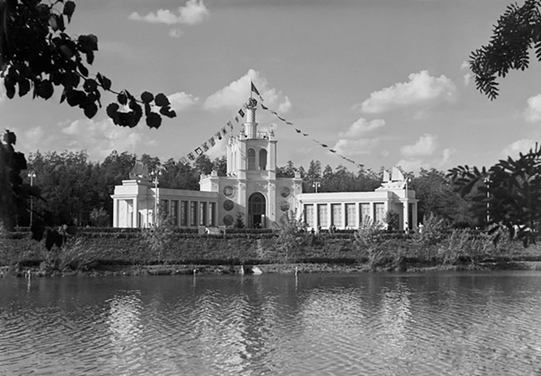 К открытию выставки 1954 г. павильон был отремонтирован и переоформлен. Он стал напоминать здание Северного речного вокзала Москвы, построенного в 1937 г. по проекту архитекторов А. М. Рухлядева и В. Ф. Кринского.