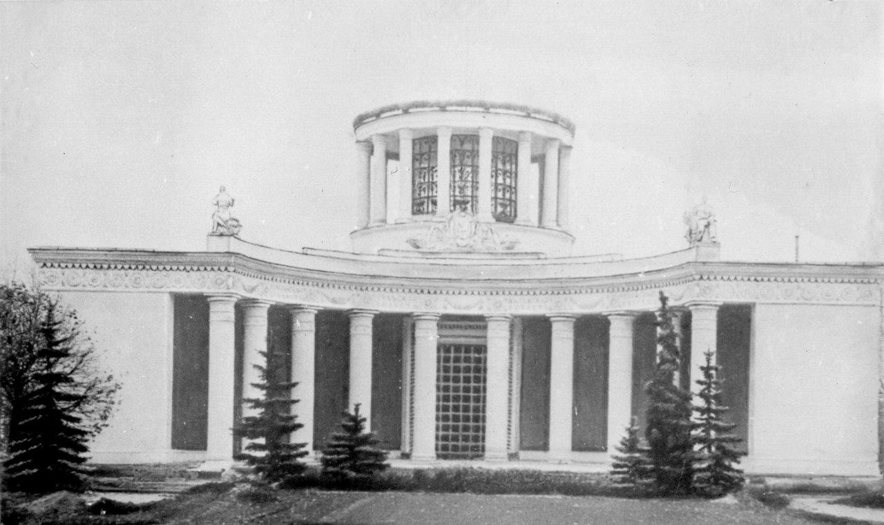 Относительно небольшое по размерам здание спроектировано таким образом, чтобы в определенном ему контексте ансамбля выставки выглядеть наиболее внушительно. На уютной площади перед зданием разбит большой цветник, окруженный деревьями. В центре его некогда стояла громадная ваза. Архитекторы павильона – В. В. Лебедев и П. П. Штеллер.