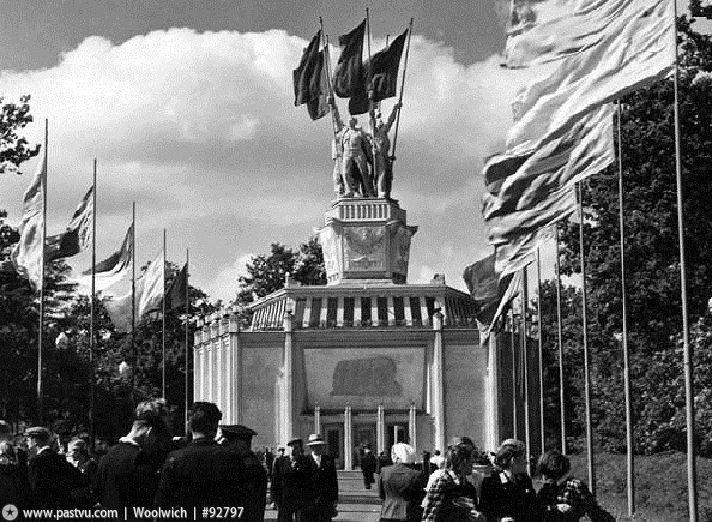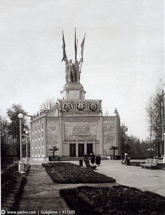 Павильон был построен в 1940 году архитекторами М.З. Краевским и Ф.Я. Бялостоцкой на окраине тогдашней Всесоюзной сельскохозяйственной выставки (ВСХВ). Открытый как павильон МОПР – Международной организации помощи революционерам, после присоединения к СССР прибалтийских республик, он был передан им, получив в 1941 году название «Литовская ССР, Латвийская ССР и Эстонская ССР». В тот год ВСХВ проработала чуть больше месяца в связи с началом Отечественной войны и закрылась до 1954 года. К открытию в 1954 году прибалтийские республики получили каждая свой павильон, а здесь разместилась «Физическая культура и спорт».