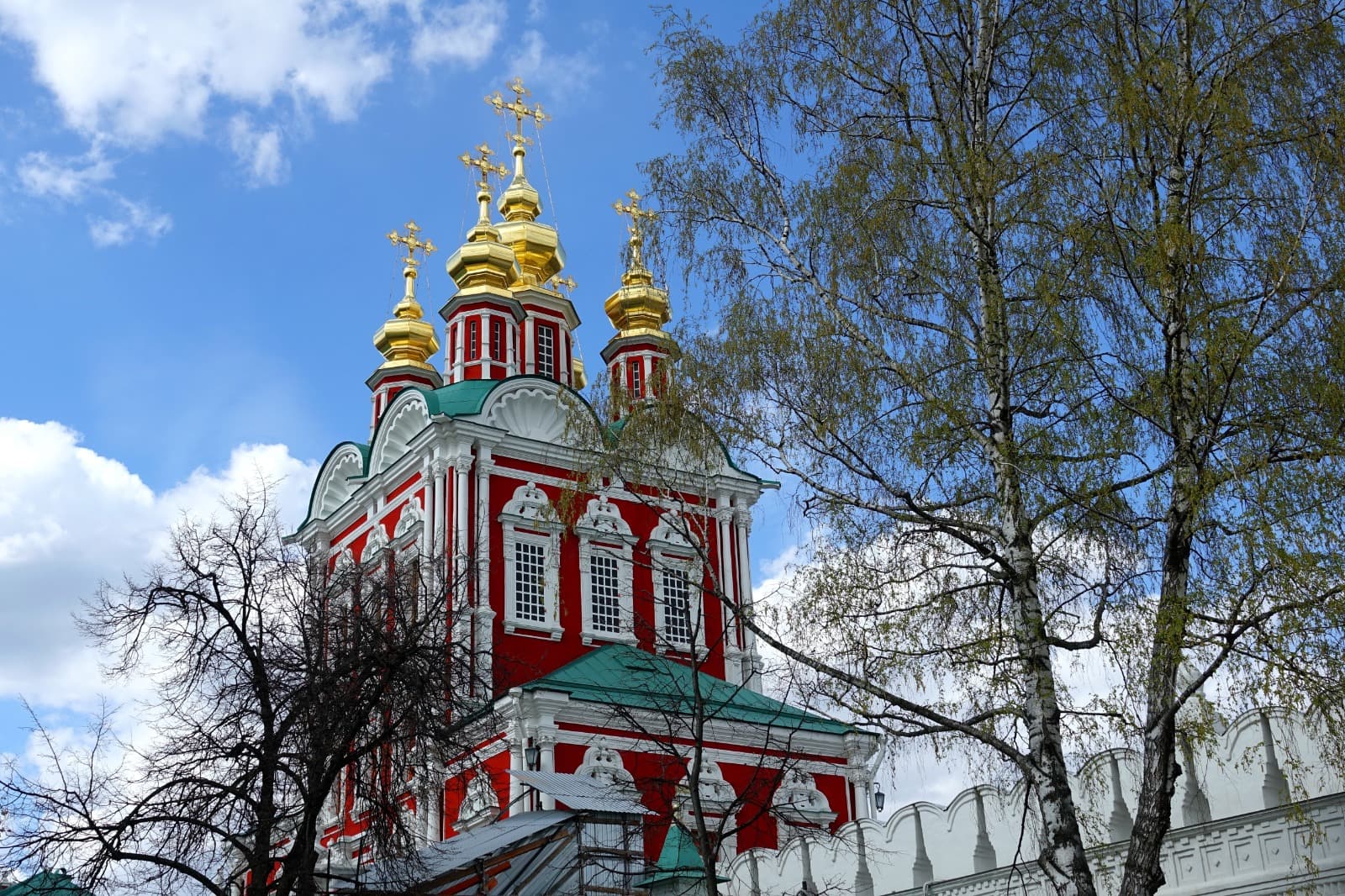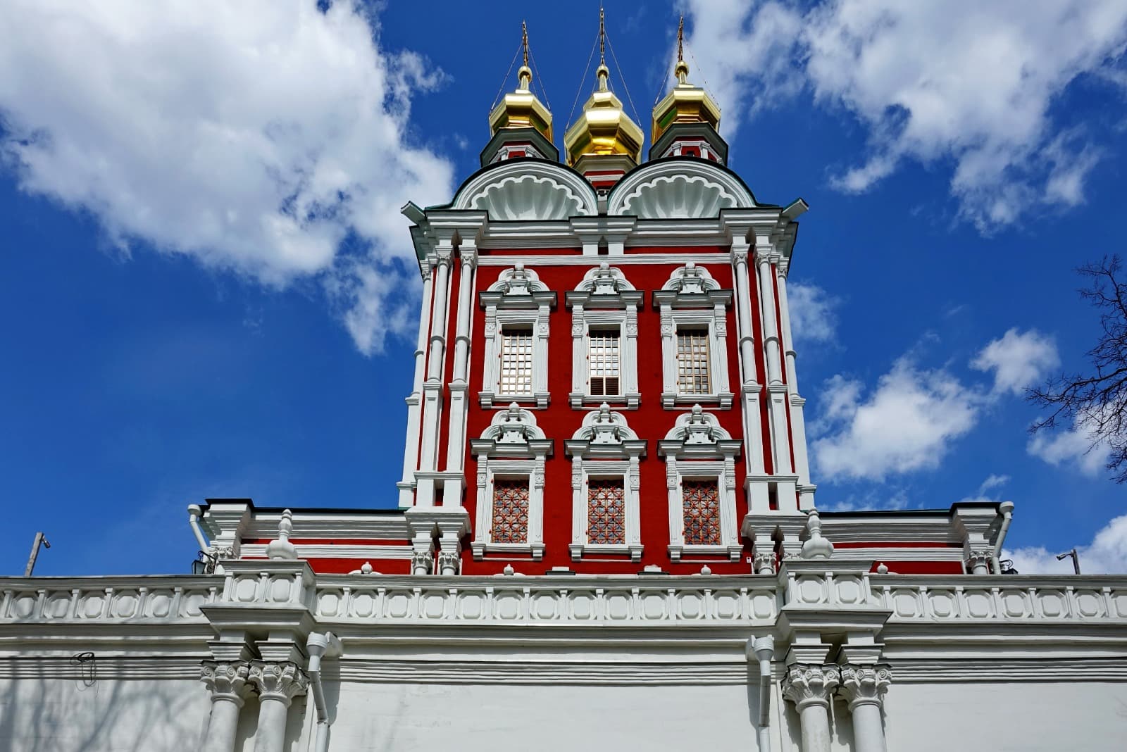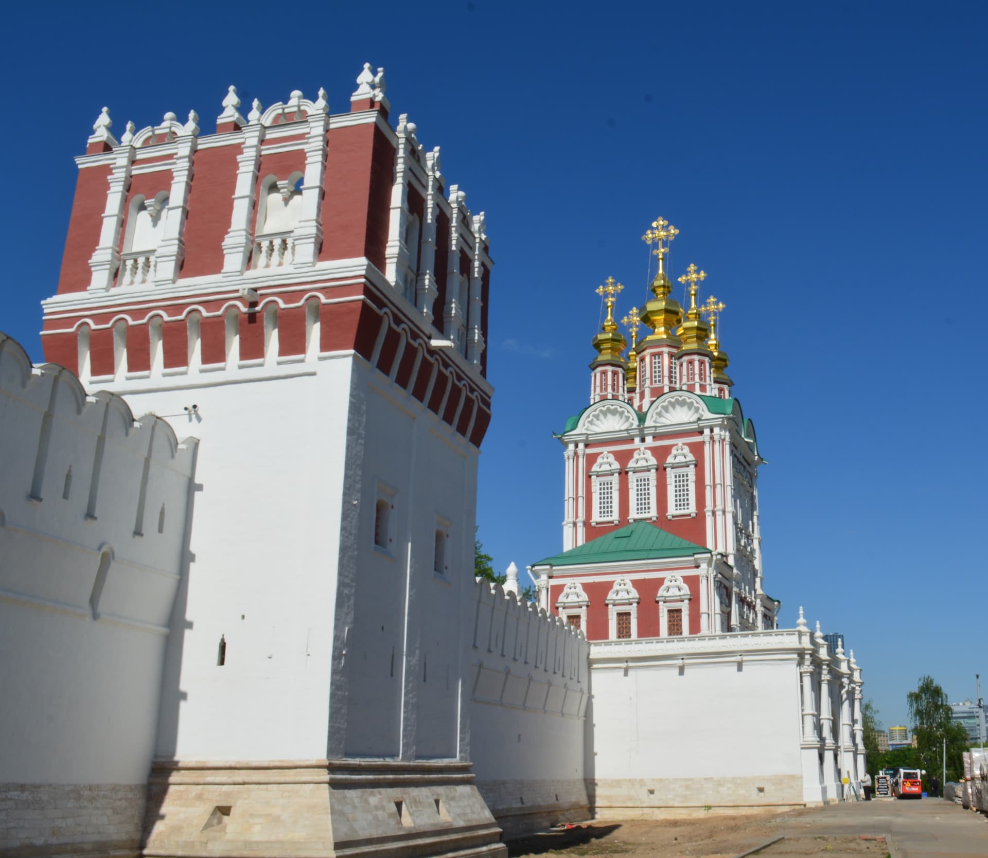 Церковь была построена по заказу Софьи Алексеевны над святыми (северными) воротами монастыря в 1687 – 1688 гг. Изящный облик белокаменного храма представляет собой высокий четверик с тремя рядами окон, завершающийся раковинами и пятью фигурными главками на граненых барабанах. В Преображенской церкви сохранился иконостас работы Карпа Золотарева. Особой тонкостью письма отличаются иконы местного ряда.