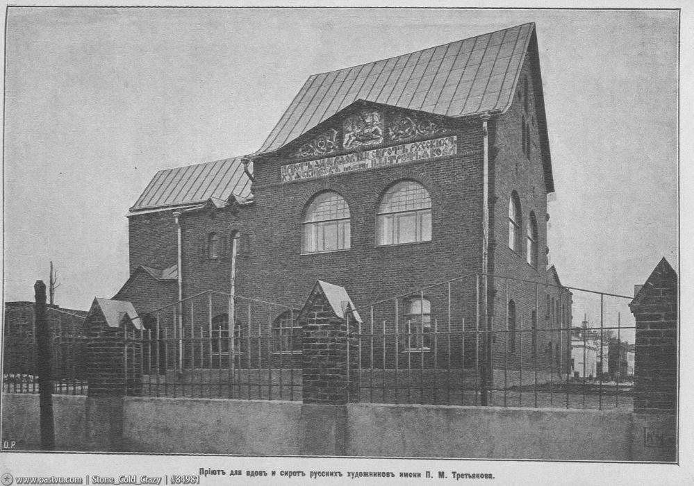 Здание Приюта для вдов и сирот русских художников имени П. М. Третьякова или «Вдовий дом», как его порой называли, было построено в 1910-1912 годах по проекту архитектора Н. С. Курдюкова, при участии инженера Н. Егорова, в неорусском стиле, на участке и на средства, завещанных П. М. Третьяковым.