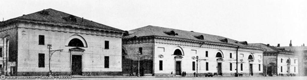 Необходимость постройки в Москве новых каменных складов для хранения «казенного провианта» появилась еще в начале 1820-х годов, поскольку старые деревянные амбары, располагавшиеся тогда у Серпуховской заставы, обветшали и требовали замены. Новые склады первоначально предполагалось построить там же, у Серпуховских ворот.