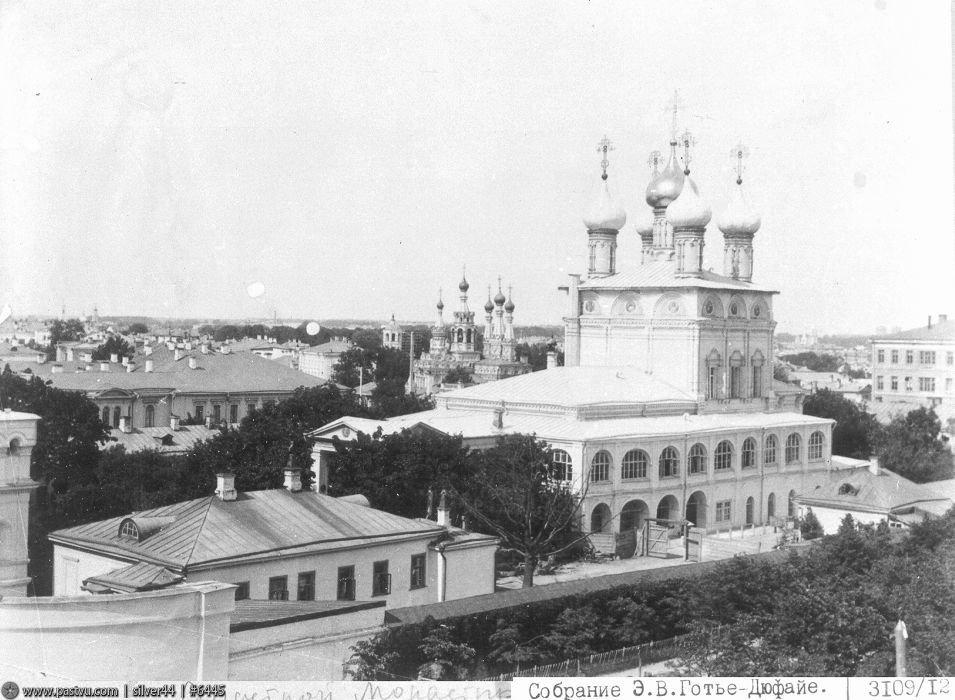 Чуть позже, в 1654 году, при соборе возник монастырь. Это был очень живописный, необычный комплекс – монастырь с пятиглавым собором и надвратной церковью-колокольней (1692 г.), вплотную примыкающий к трехшатровой проездной башне Белого города. В ансамбль входила и построенная к 1652 году многоверхая церковь Рождества Богородицы в Путинках, стоящая чуть поодаль, но прекрасно просматривающаяся от городских ворот.
