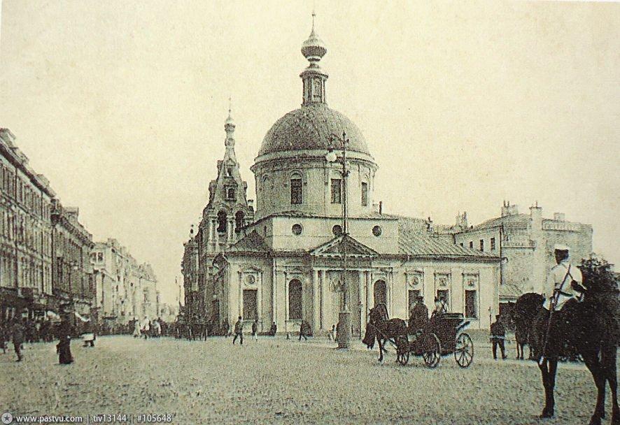 Другой угол бульвара и Тверской улицы оформила представительная ротонда церкви Дмитрия Солунского. Она возникла из древнего, тогда еще загородного, Киево-Печерского подворья. Трудно поверить, но под асфальтом обычной дворовой автостоянки, скрывается освидетельствованное археологами кладбище, где москвичи хоронили своих близких еще во времена князя Донского. Построенная, очевидно, в 1640-х, трехшатровая церковь была снесена в 1791 году и заменена ротондой - еще одно свидетельство постепенного превращения «проезда подле стены Белого города» в главный московский бульвар.