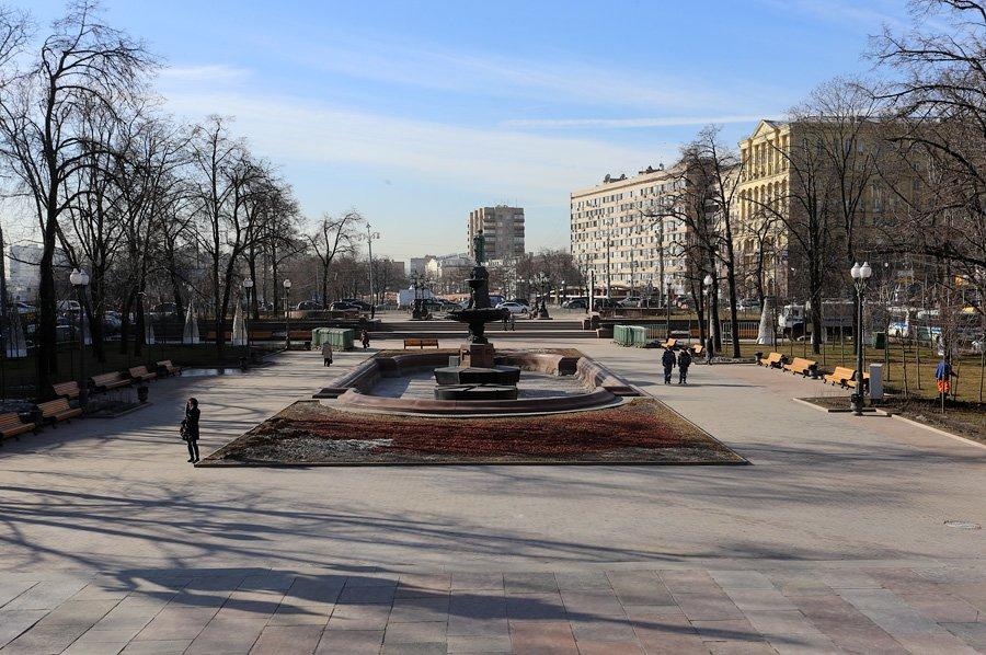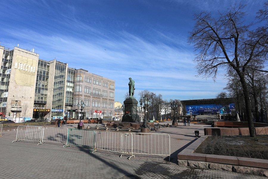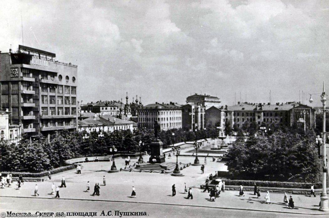 Расплывчатые габариты (скорее, пространство, чем площадь) Пушкинская приобрела недавно, лет 40 назад. В советские годы она превратилась, по сути, в проезжую часть Тверской магистрали в окружении двух скверов, визуально почти не связанных друг с другом. Конечный отрезок Тверского бульвара также слился с Новопушкинским сквером, утратив свою четкость и самостоятельность.