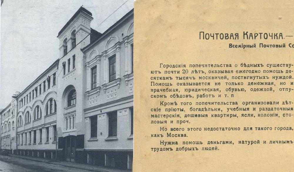 В 1894 году в Москве были созданы городские попечительства о бедных. Попечительства организовывали учебные мастерские, богадельни, приюты и оказывали разнообразную помощь нуждающимся. Это и приём врача, и консультация юриста, устройство в ясли, в загородные колонии детского отдыха, аренда дешёвых квартир и предоставление одежды или обуви. Были организованы дешёвые обеды, людям помогали получить работу.